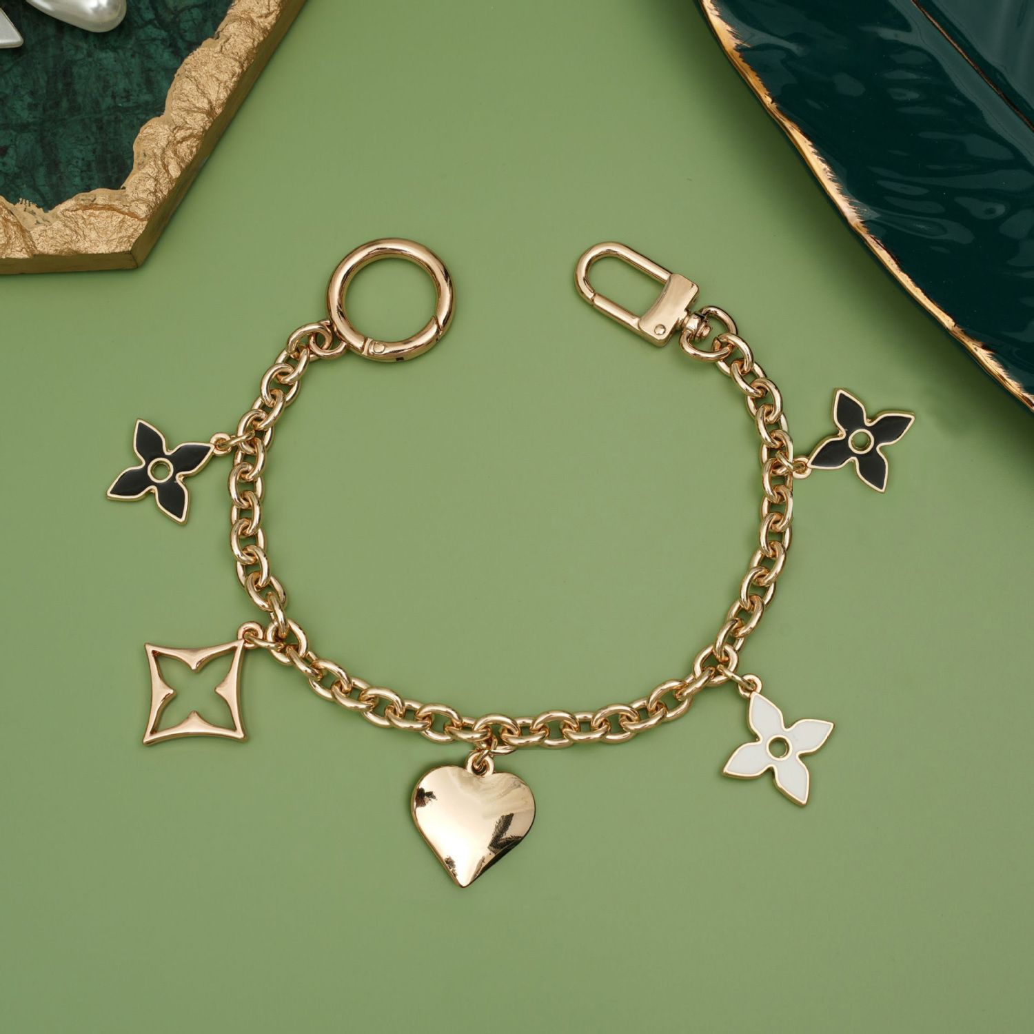 バッグ掛け飾りチェーン四葉草ストラップ麻将バッグ飾りチェーン部品金属延長チェーン老花白黒ピンク