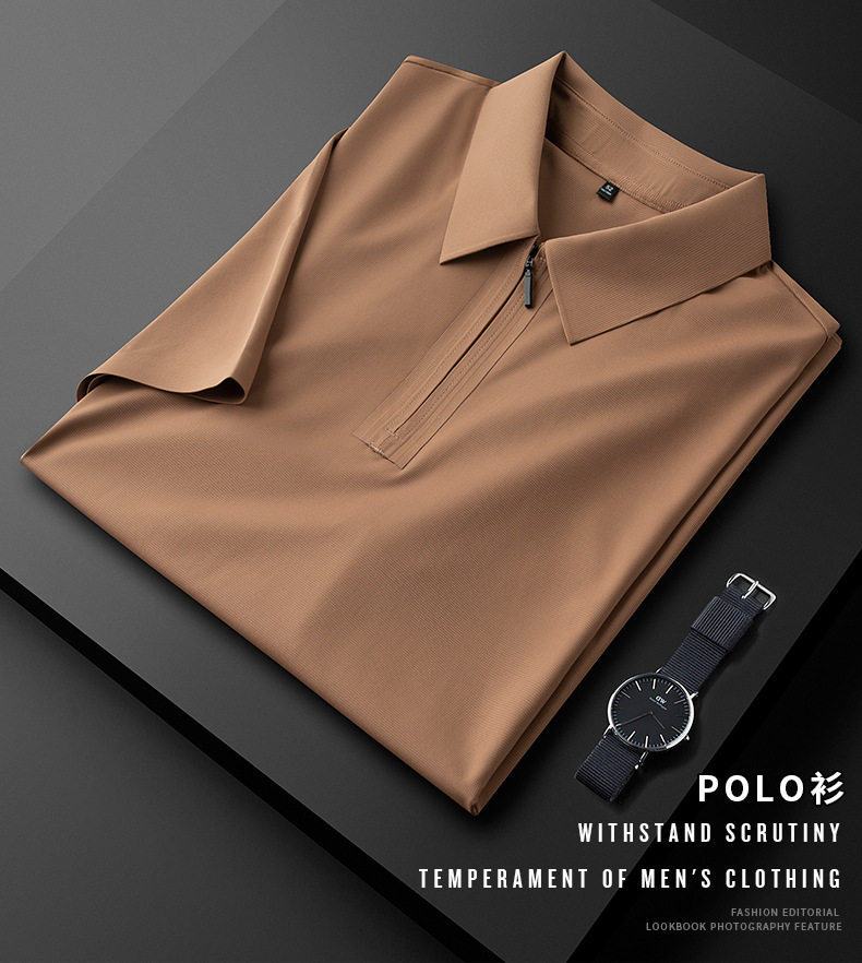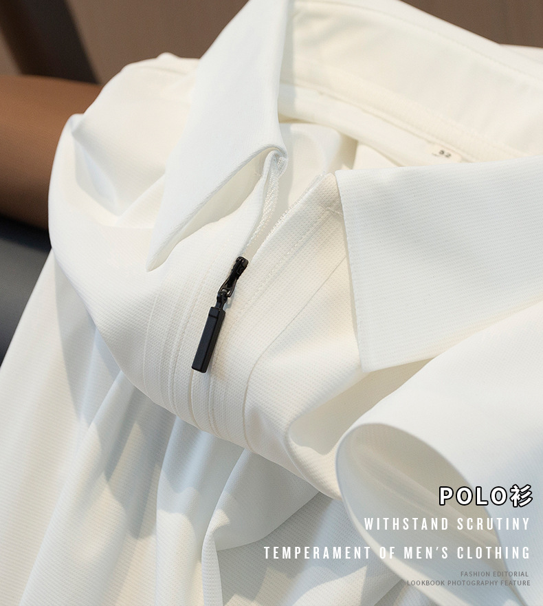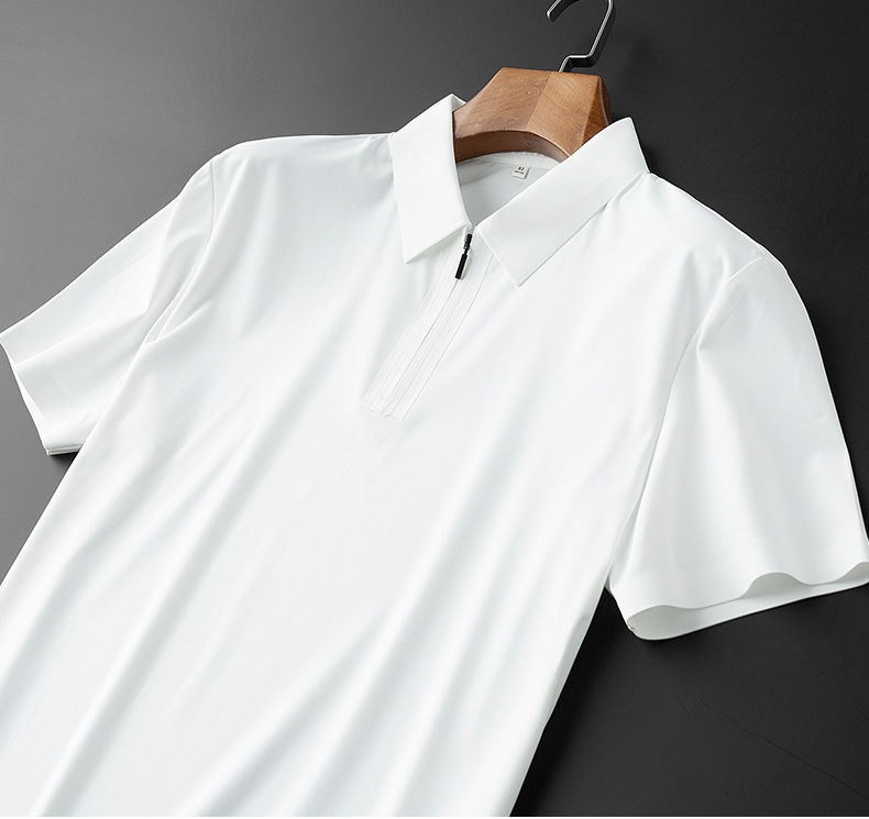 薄くて通気性の良い夏用白ポロシャツメンズ半袖スリムラペルカジュアルハイエンド肌に優しいクールポールTシャツ