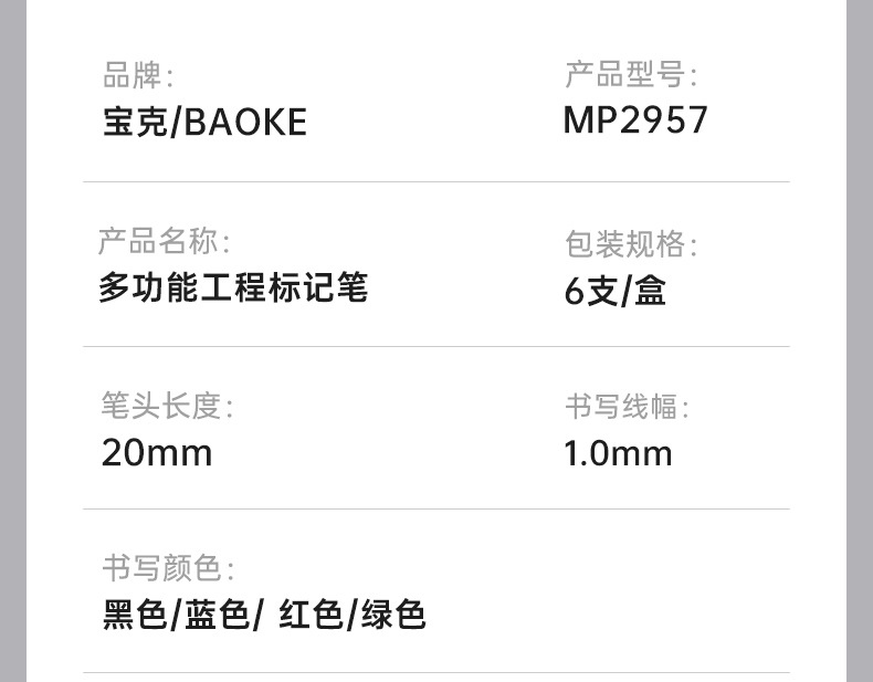 Baoke MP2957 速乾性ロングヘッドマーカー 20 ミリメートル油性木工深穴エンジニアリングマーカー 1.0 ミリメートル