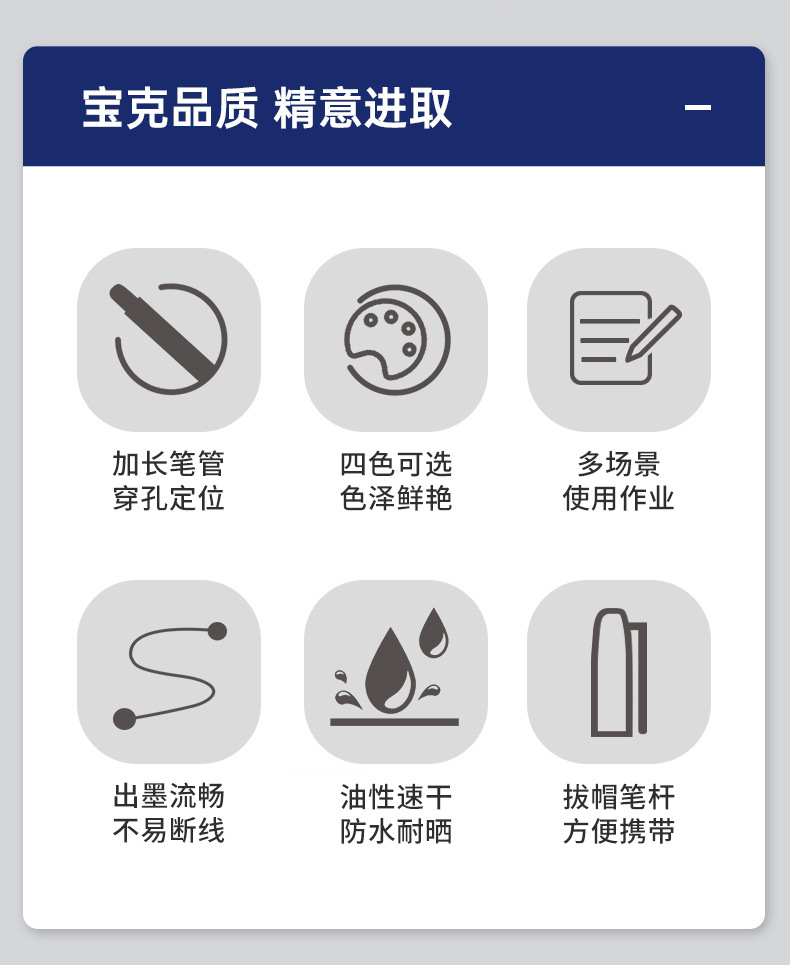 宝克pc3948a大容量ケース中性ペン針管式ペン先水筆学生作業ペン0.5mm