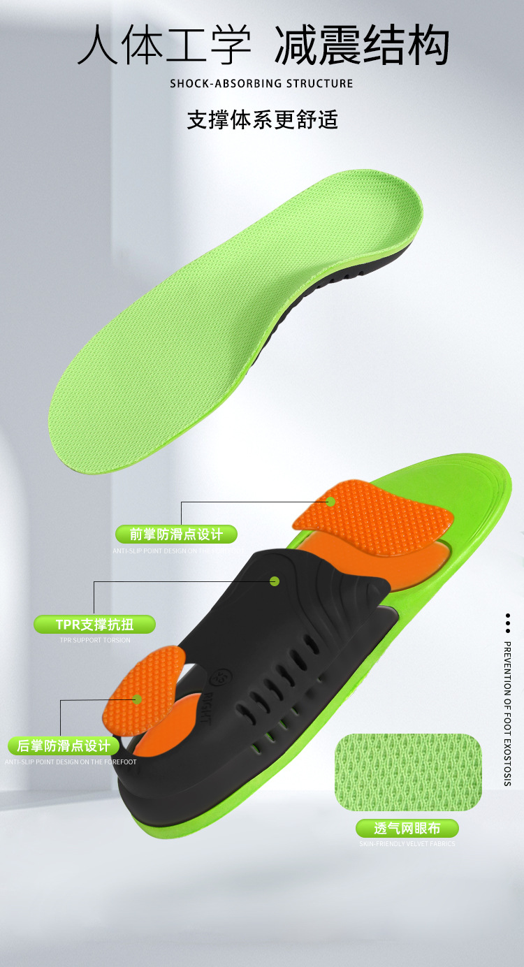アーチインソール PU スポーツインソール偏平足ハイアーチサポートクロスボーダー売れ筋爆発モデル男性と女性の衝撃吸収インソール