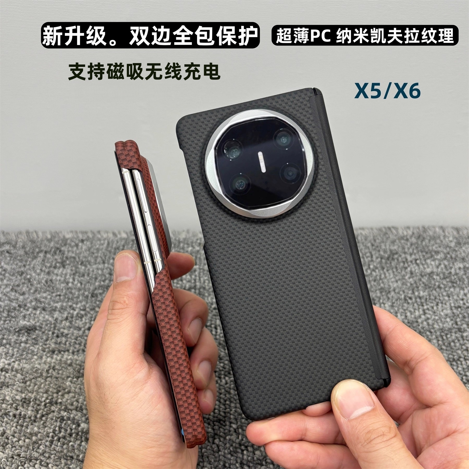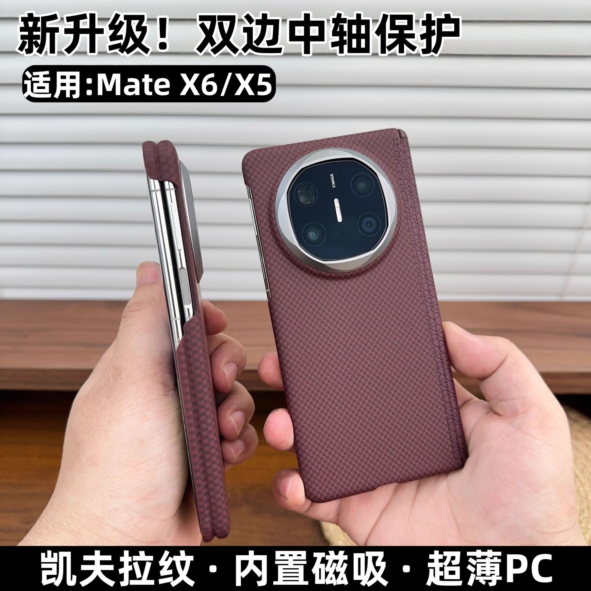适用华为matex5手机壳磁吸凯夫拉纹x6典藏双中轴铰链超薄pc保护壳