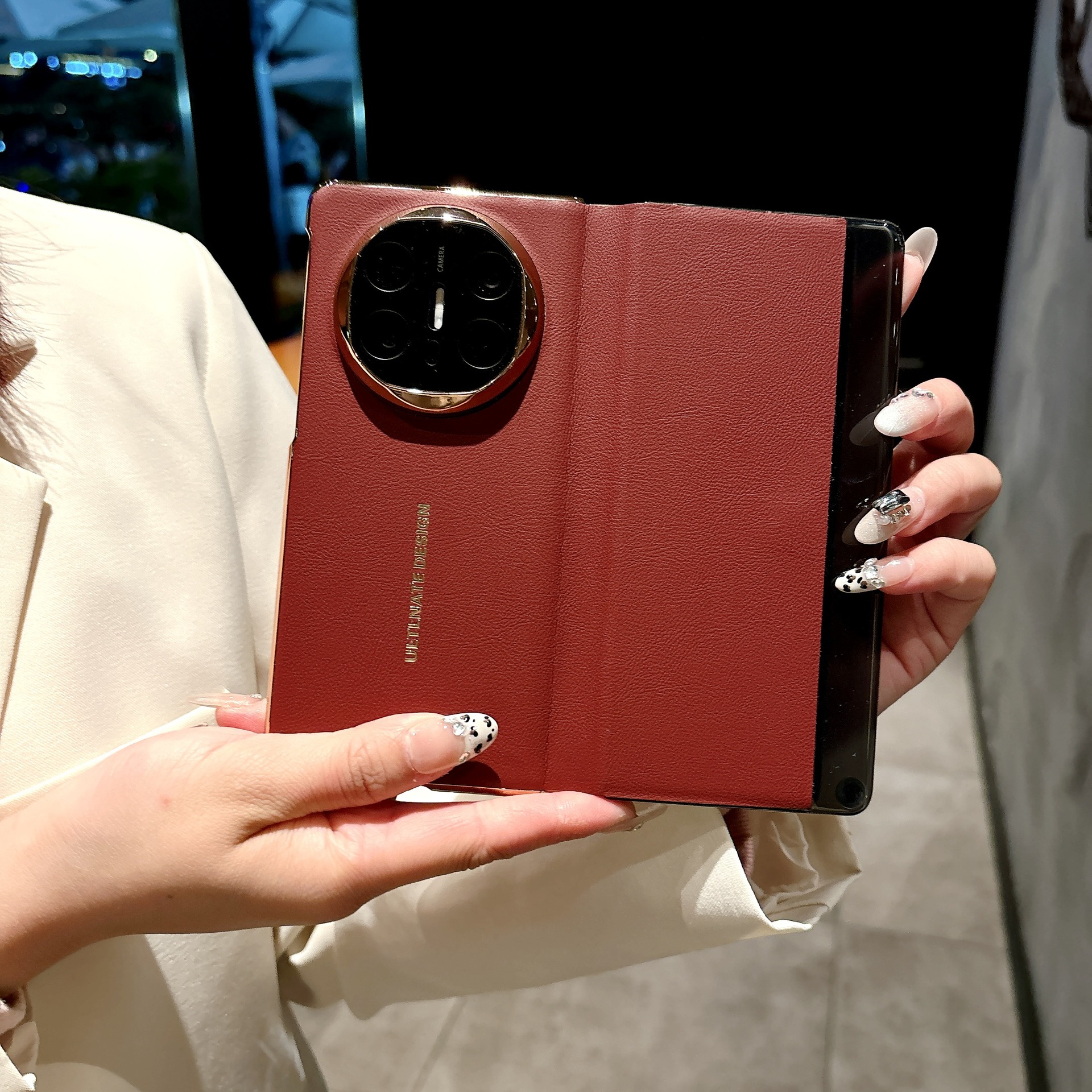 适用华为x5手机壳折叠matex3复古棕色皮质matex5典藏版包中轴防摔