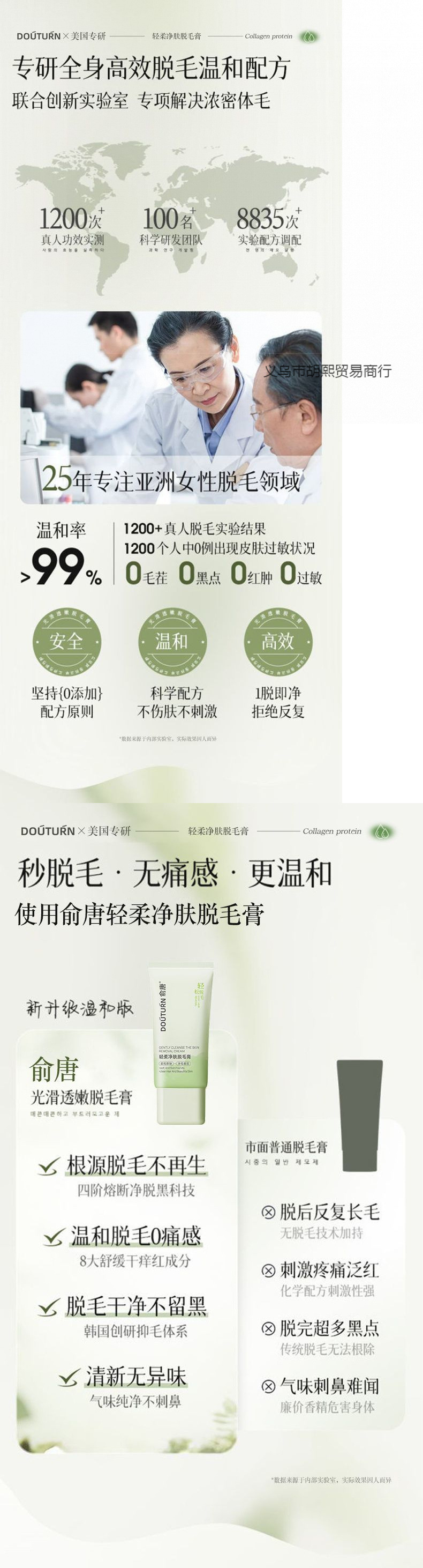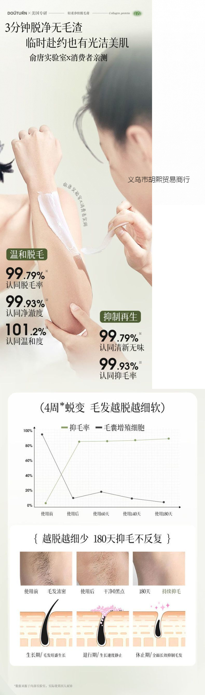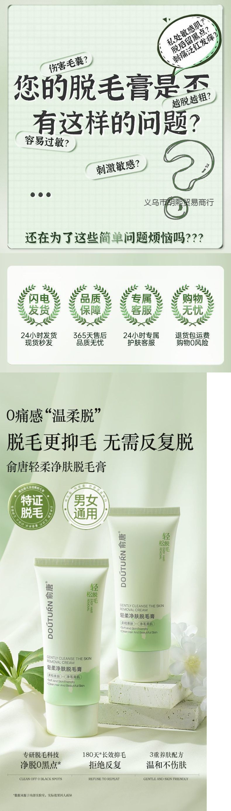 Yutang Medical Beauty 脱毛クリームは、穏やかで刺激がなく、黒い斑点を残さず、脚の毛、脇の毛を除去し、全身に使用できます。