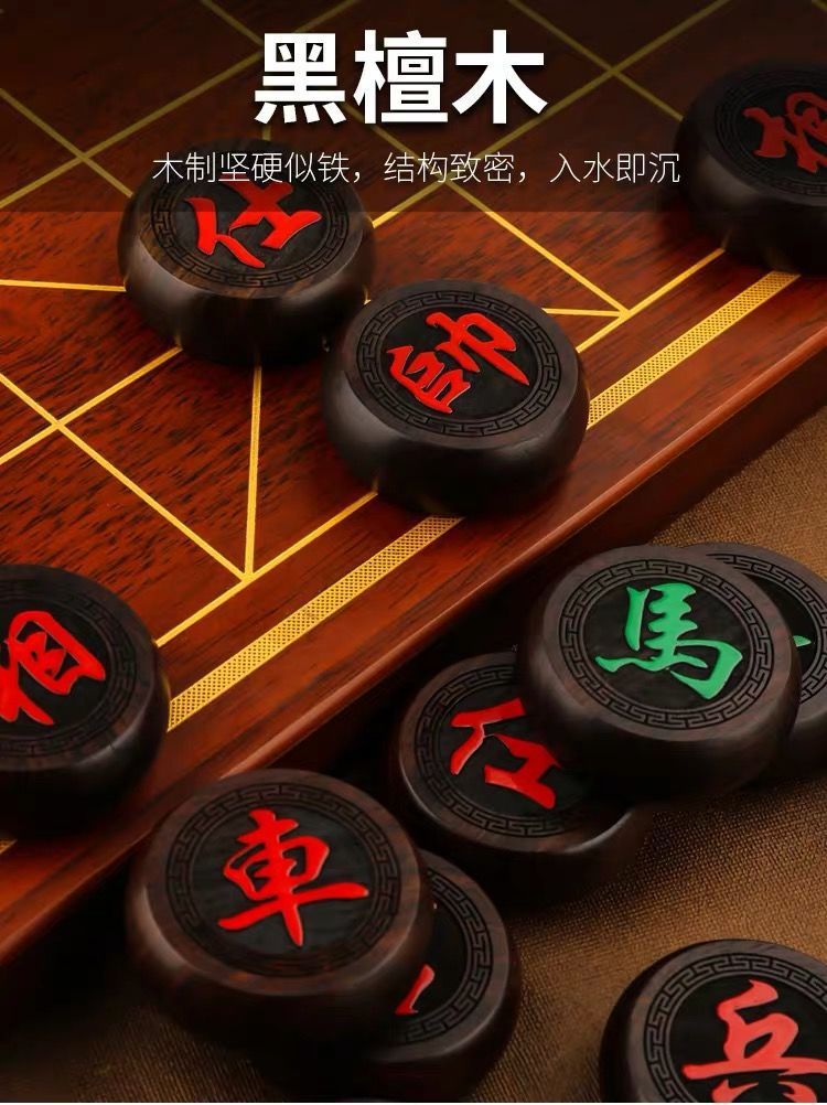 中国象棋实木金丝楠酸枝黑檀红木象棋带棋盘折叠家用大号象棋高档