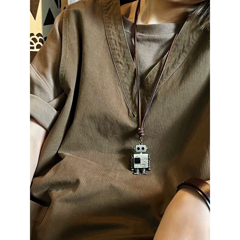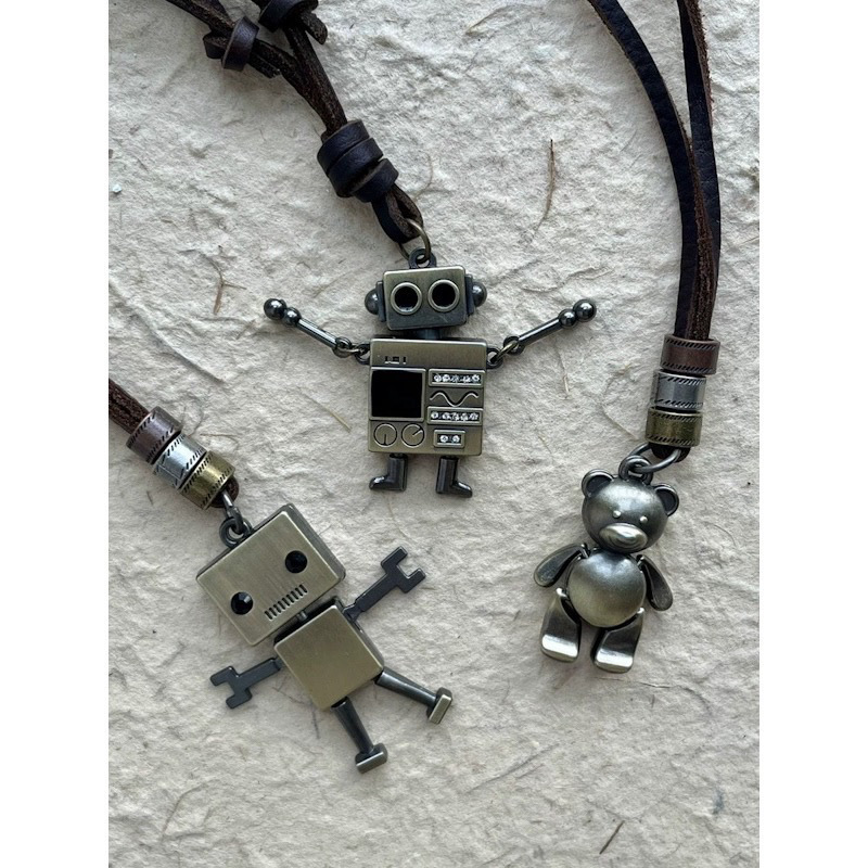 日系男女中性牛皮绳合金机器人可调节吊坠长款项链配饰