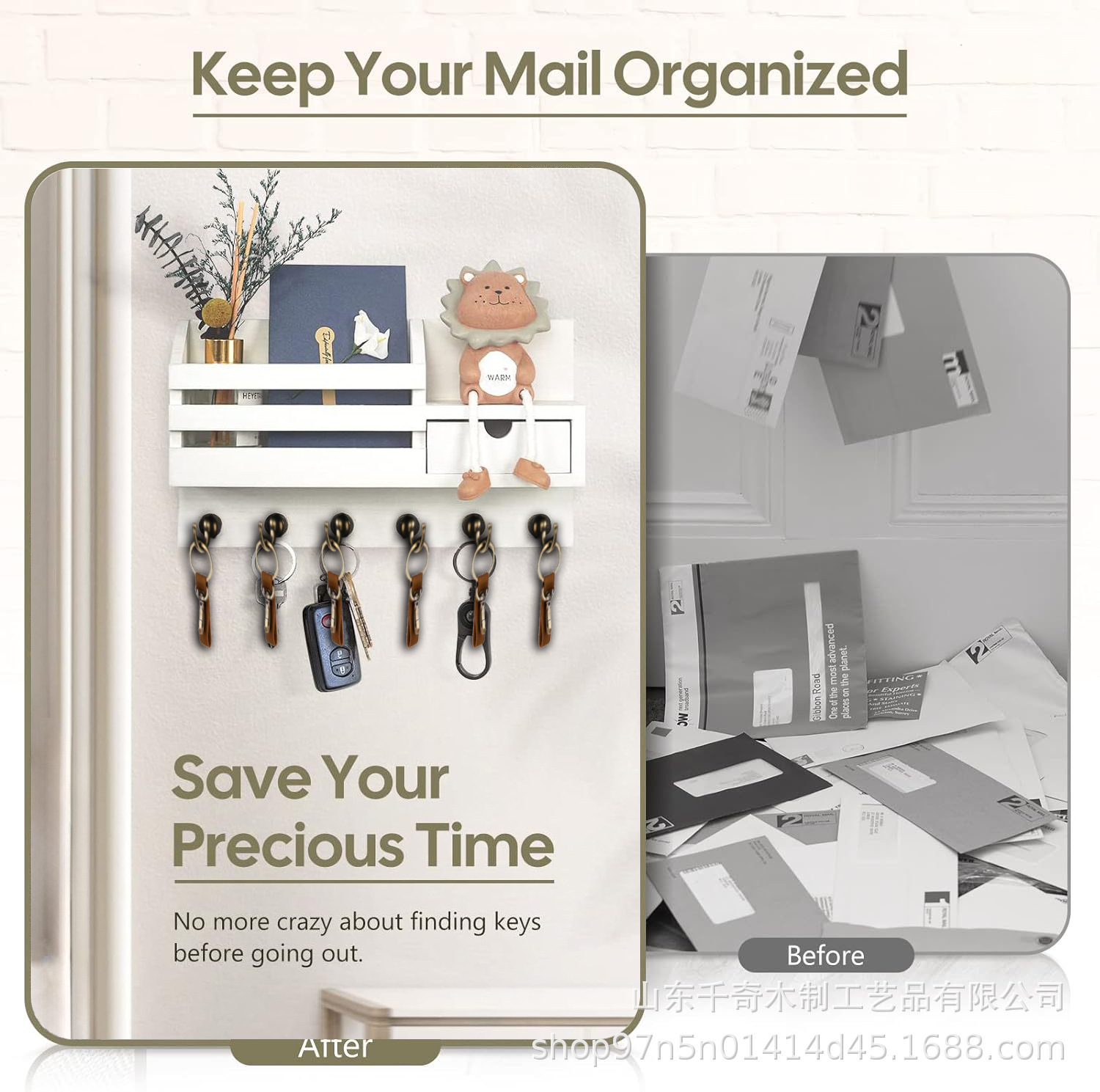 木製玄関壁掛け封筒ラック書斎キーフック壁雑貨収納ラック