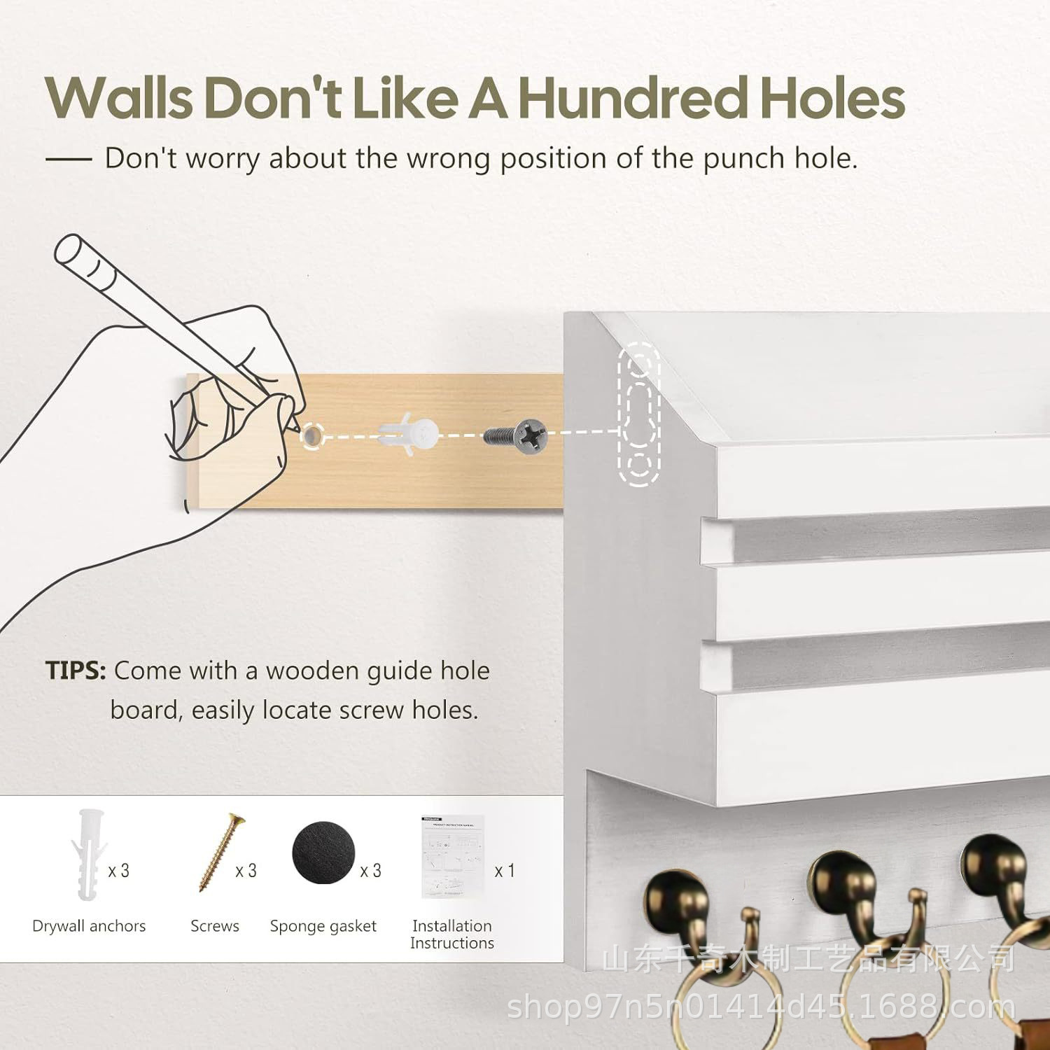 壁掛け式壁ラック壁装飾ストラップ木製収納棚ホーム壁面木製メールキーホルダー