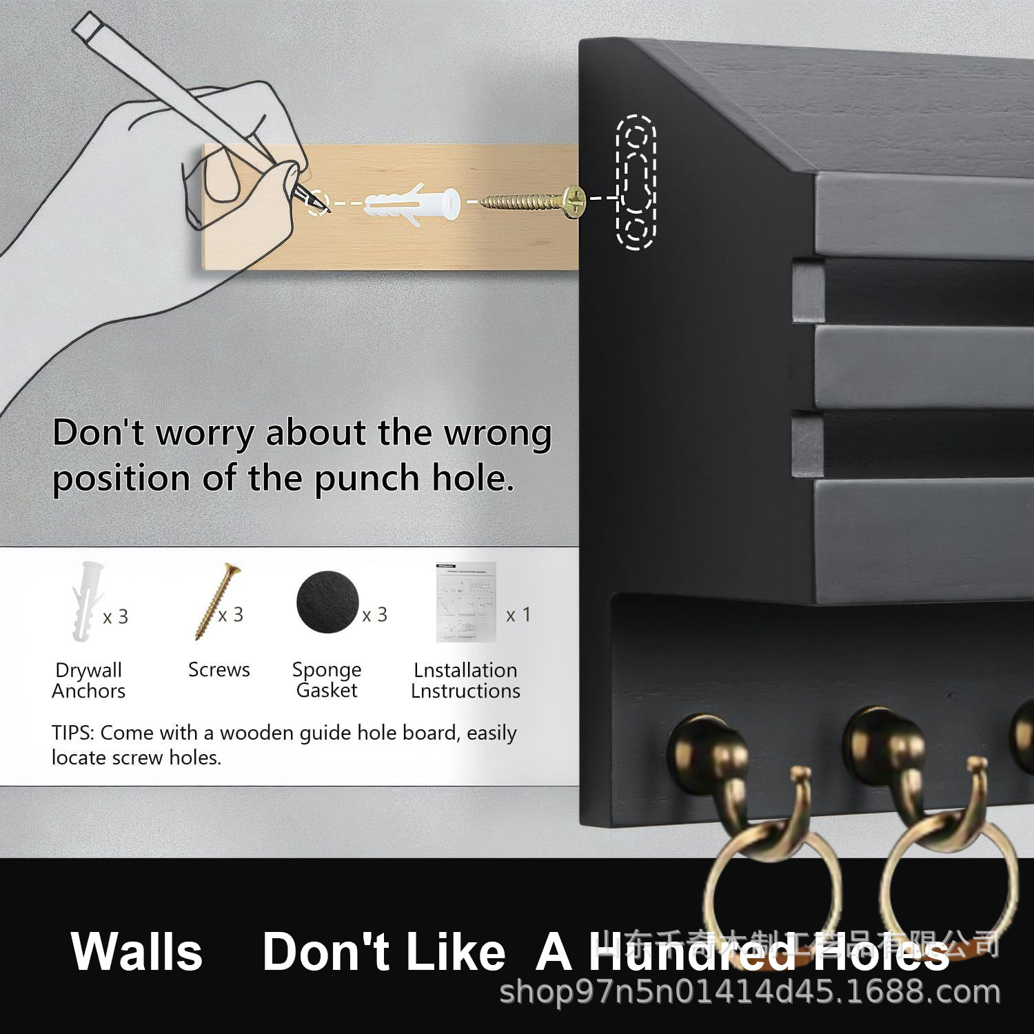 クロスボーダー木製玄関キー収納ラックリビングルーム寝室壁掛けコートラック書籍収納ラック装飾ラック