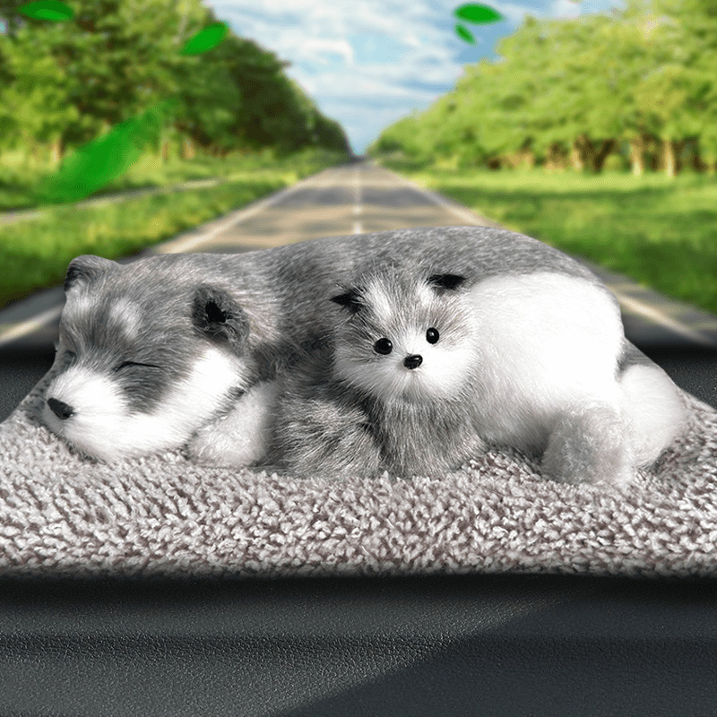 車を呼ぶことができますかわいい母と子シミュレーション犬車ぬいぐるみ竹炭猫装飾車のインテリアアクセサリーギフト
