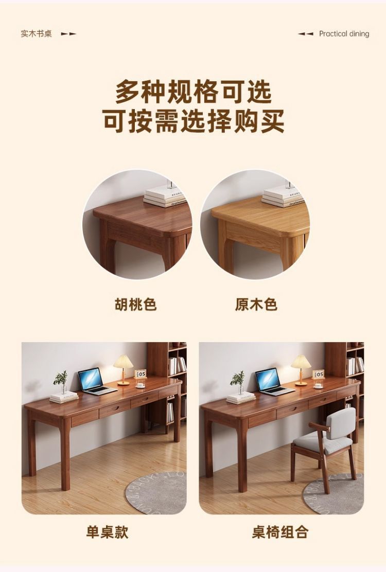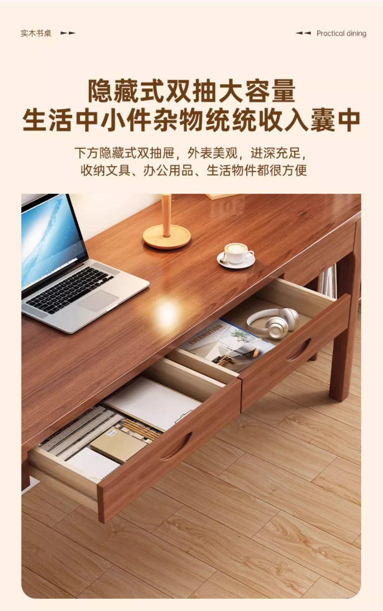 無垢材デスク、コンピューターデスク、引き出し付きシンプルホームデスク、ワークベンチ、ライティングデスク、書斎、子供用学習デスク