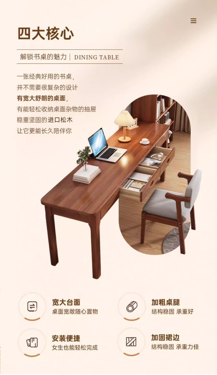 無垢材デスク、シンプルなコンピューターデスク、家庭学習デスク、学生寝室デスク、オフィスデスク、eスポーツワークベンチ、デスクトップ