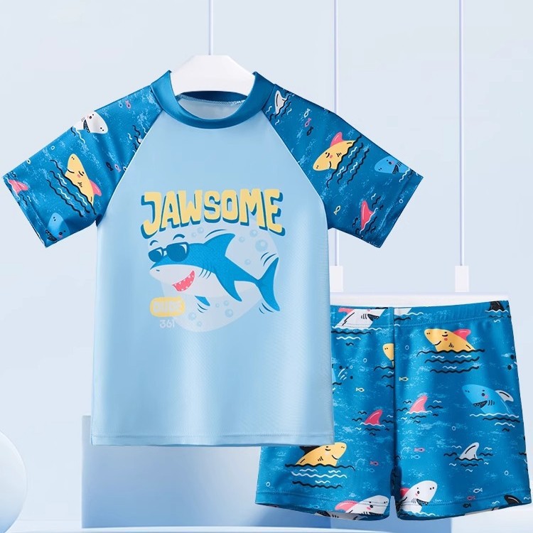 子供の水着の男の子の赤ちゃんの分体の水着の中で大きい子供の通気性の半袖の温泉の速乾の水着の学生は卸売りします。
