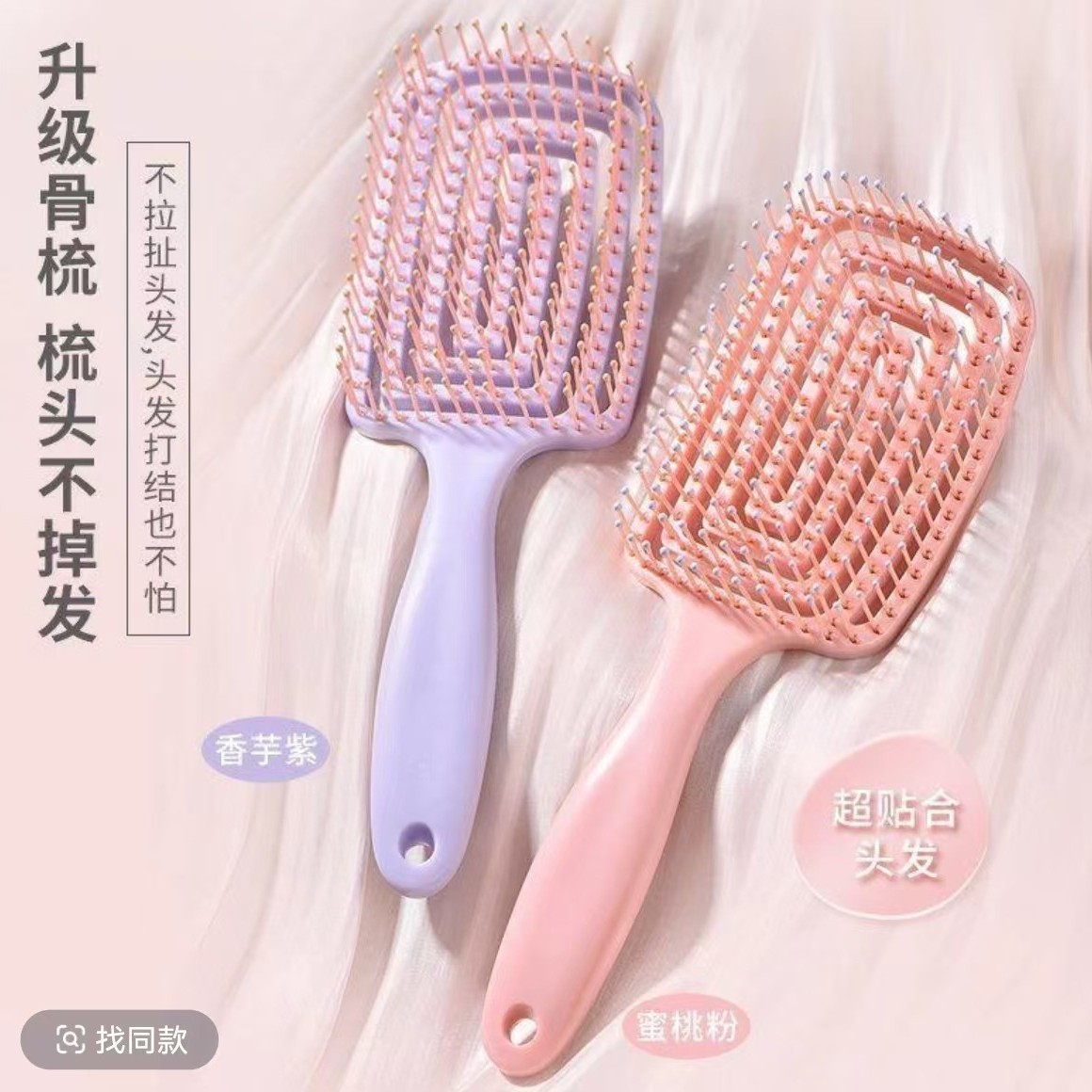 樱花粉蓬松排骨梳高颅顶排骨梳子大弯卷发梳按摩造型神器女家用梳