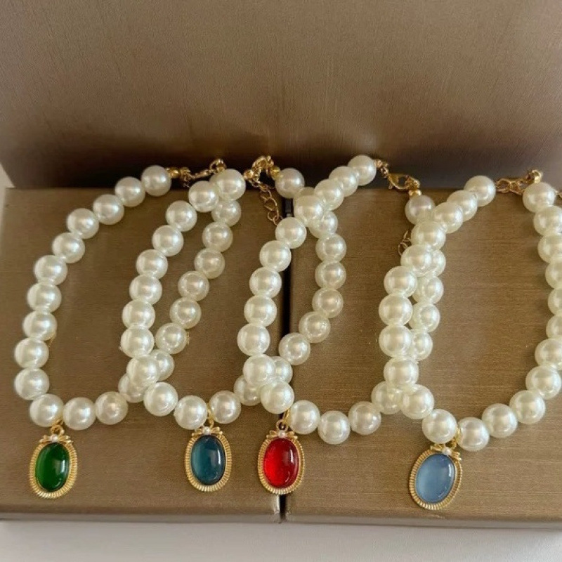 ペットの犬と猫のカラフルな宝石真珠のような光沢のあるかわいい真珠のネックレス首輪ファッション装飾ビションテディ犬