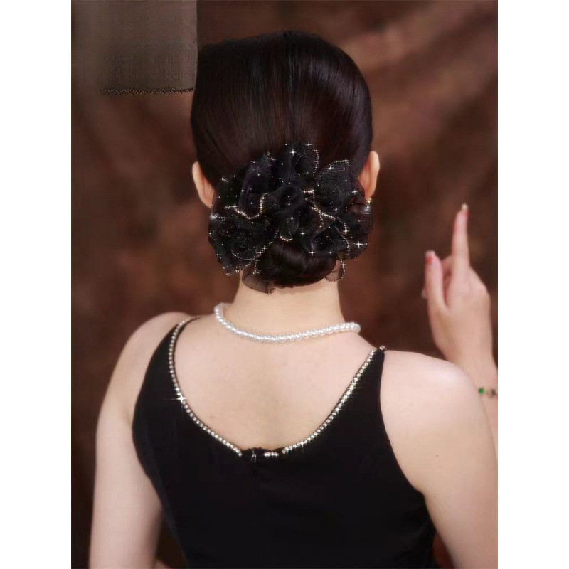 特大黒ふわふわヘアロープ女性の新しい花のつぼみヘアロープ高弾性大腸ヘアリングゴムバンド帽子