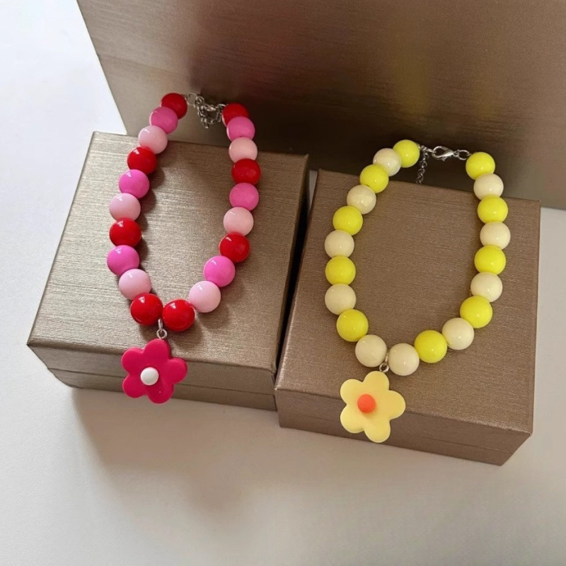 ペットネックレス マカロン カラーブロック フラワーペンダント ビーズ 犬猫首輪 ネックレス