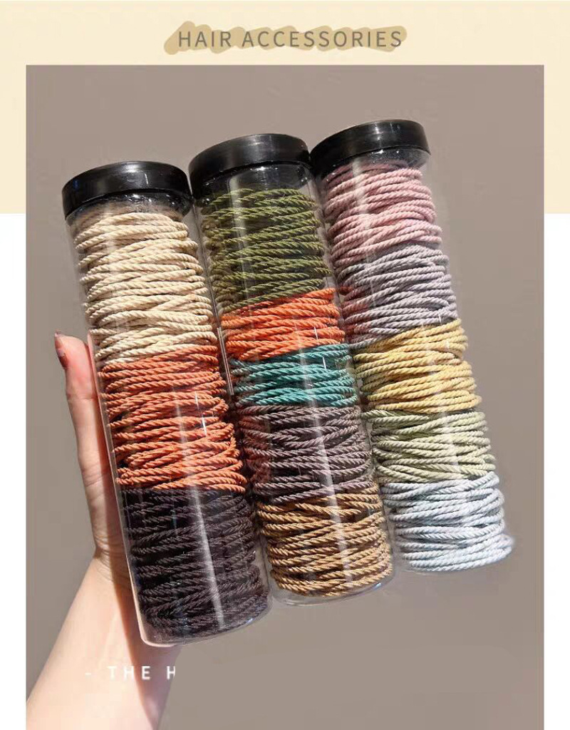 【100本入福利厚生】スレッドヘアーアクセサリー缶入りヘアーコルセット髪飾り高弾力性ポニーテール革筋
