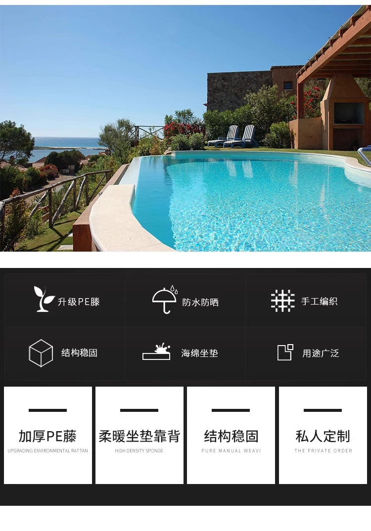 屋外ソファー藤編レジャー庭園別荘客間露天花園ホテルベランダ見本室家具セット