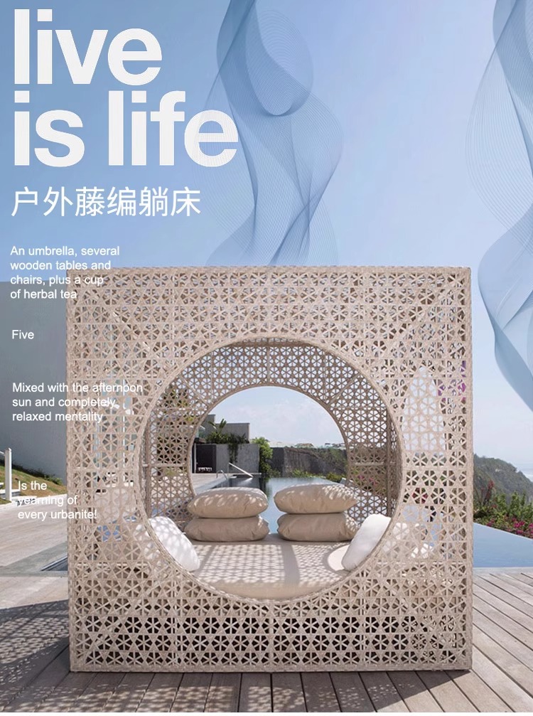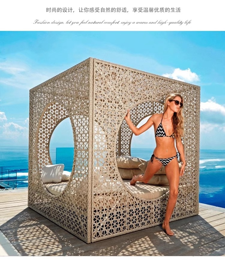 ヴィラ屋外正方形ベッドホテルクラブクリエイティブレジャー家具B&B中庭テラス籐鳥の巣ソファ