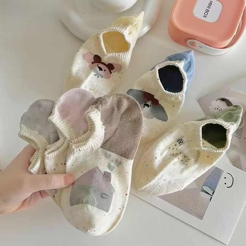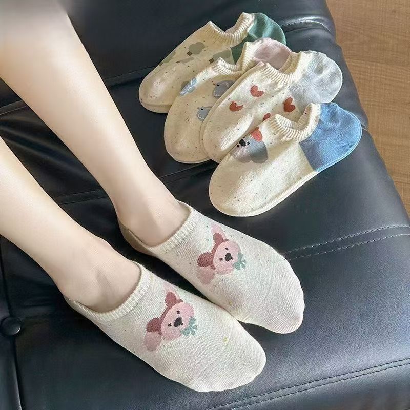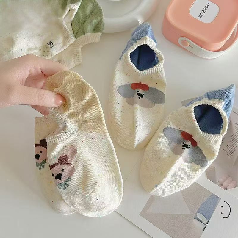春夏ローカットインビジブルソックス漫画スタイルフェアアイル要素かわいいリボン愛猫と子犬ボートソックス