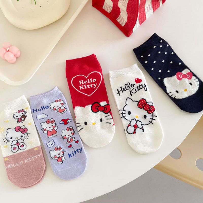 春夏の新型ハローキティの船の靴下の女性の綿のカジュアルな百合の日本のかわいい立体の漫画のケイティの猫の靴下