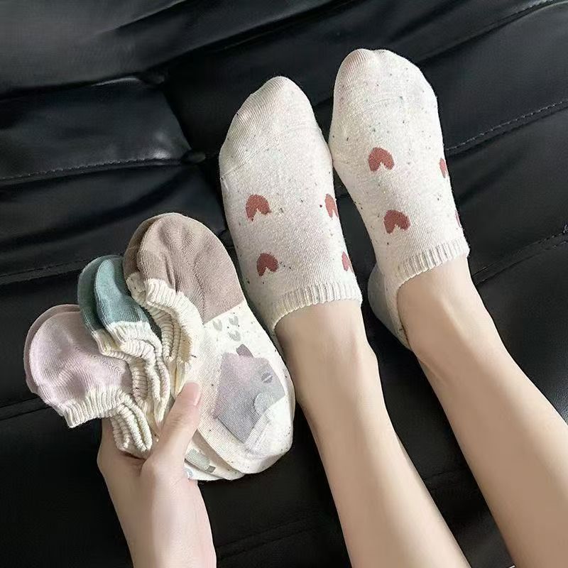 春夏の薄いタイプの吸汗滑り止めのステルスのショートソックスの韓国系の通気性のかわいい船の靴下の女性insの夏の2025のアイデアの糸