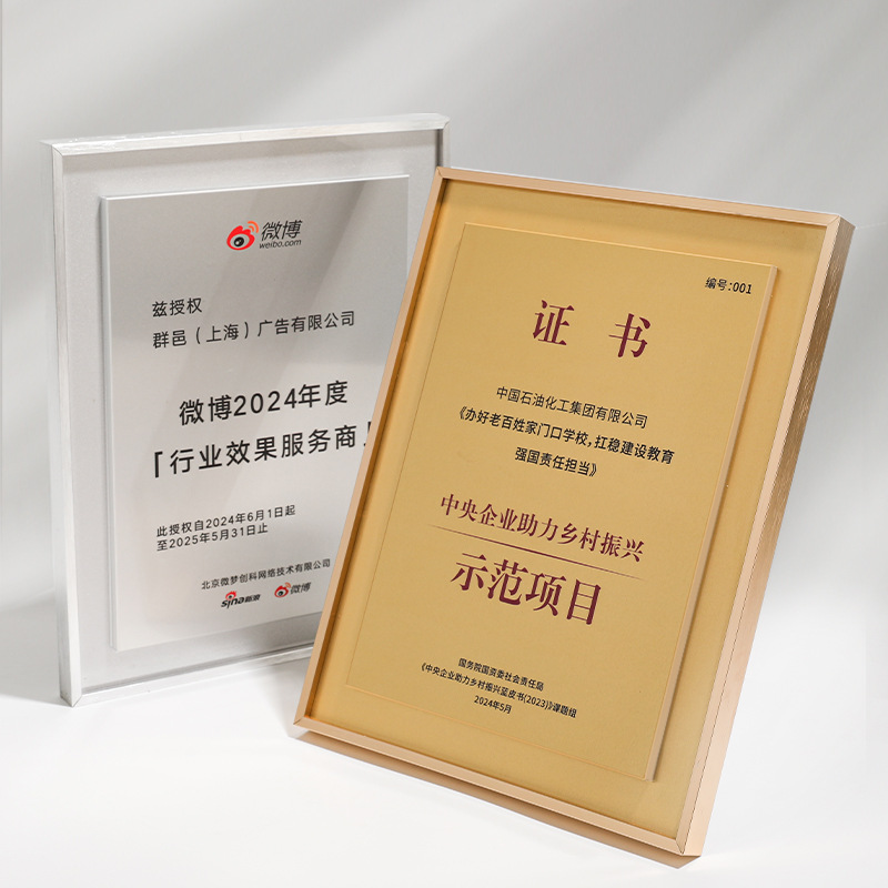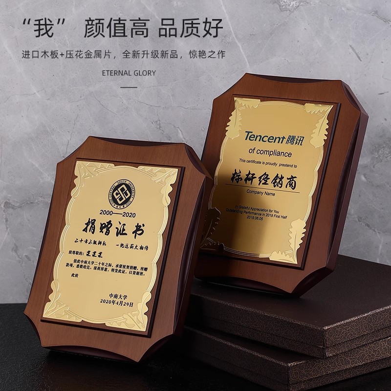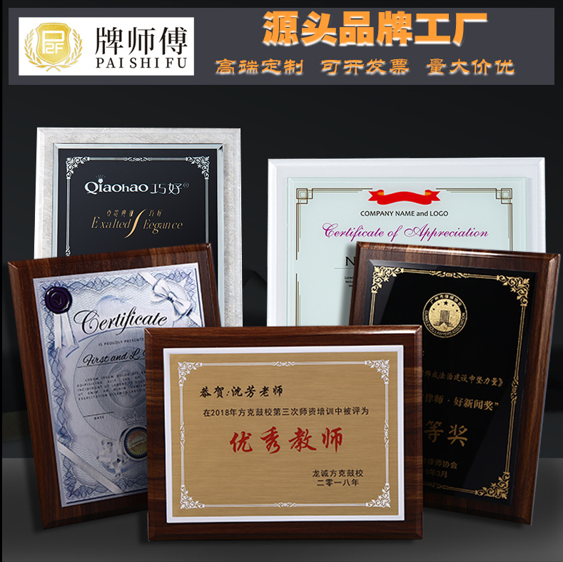 創意アルミニウム合金栄誉証書枠メダル授権牌制作社員授賞証書石版資格賞座