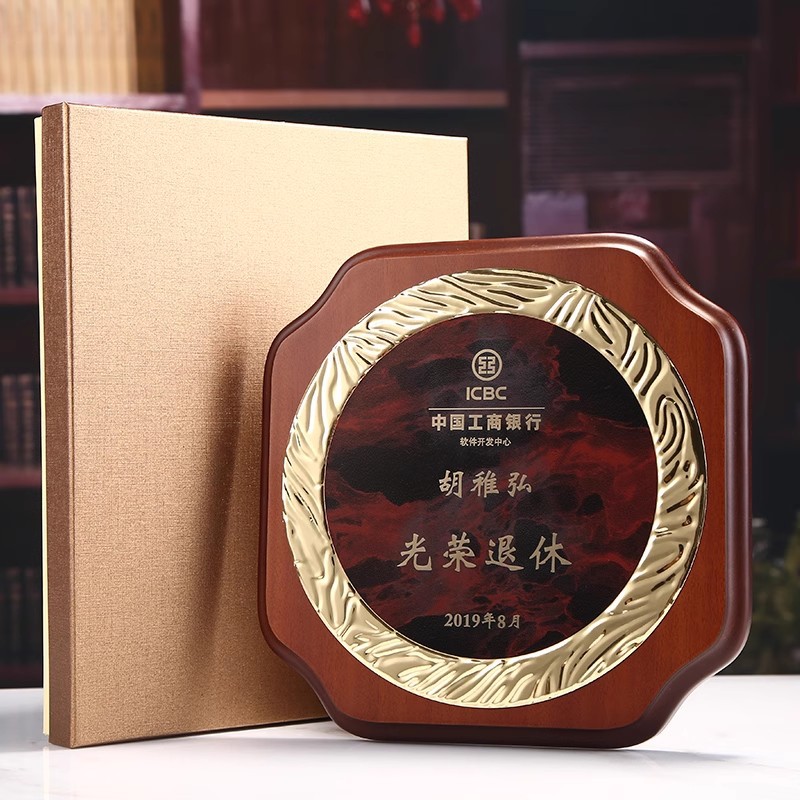 退職記念品メダルカスタマイズされたクリエイティブラウンド無垢材賞プレートトロフィーカスタムメイド認定プレートプラーク証明書
