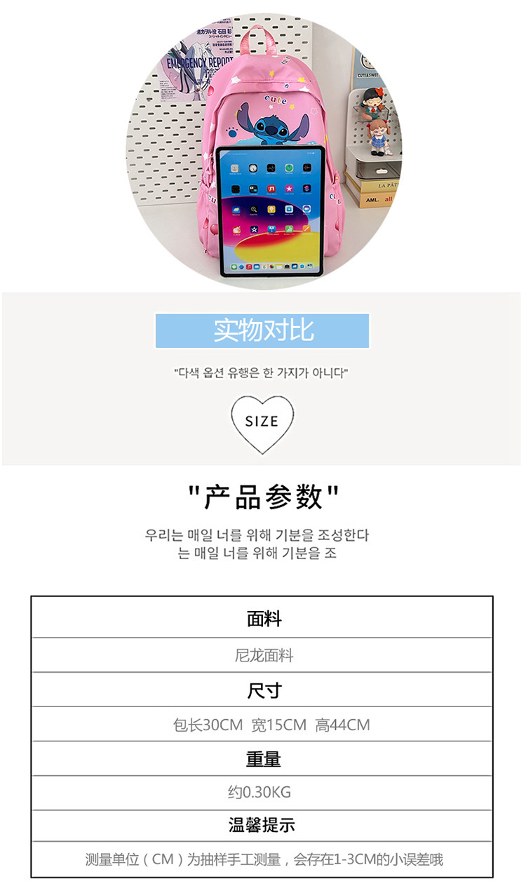 跨境新款史迪仔包包大容量卡通儿童双肩包轻便百搭动漫潮流背包
