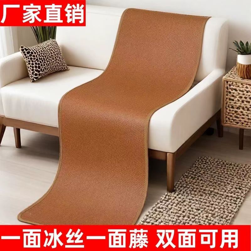 夏の涼感氷糸藤席ソファーマット2025新型ストレート滑り止め通気ソファーカバーカバー布タオル卸売り
