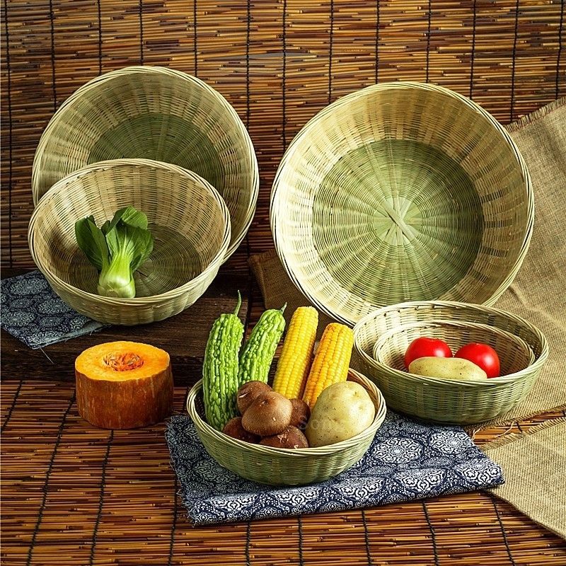 竹のバスケットのフラットな席の果物のバスケットの家庭用マントーのバスケットの竹の製品の竹の青の台所の野菜のバスケットの手作りの竹の製品