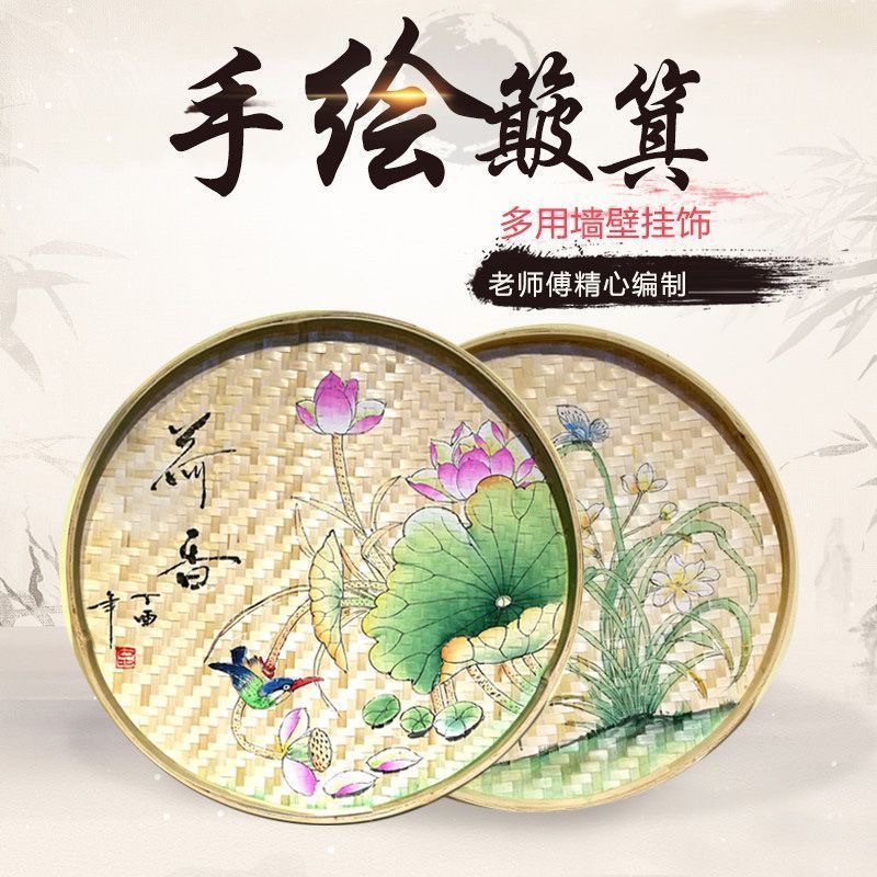 竹编み竹制品お絵かき丸箕穴なし竹ふるい絵画竹编み干し絵画饰り