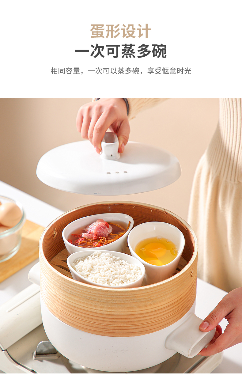 蓋付き陶器蒸し卵ボウル、蒸し卵ボウル、ゆで卵、水蒸し、家庭用蒸し野菜、蒸し肉、蒸し卵、電子レンジ