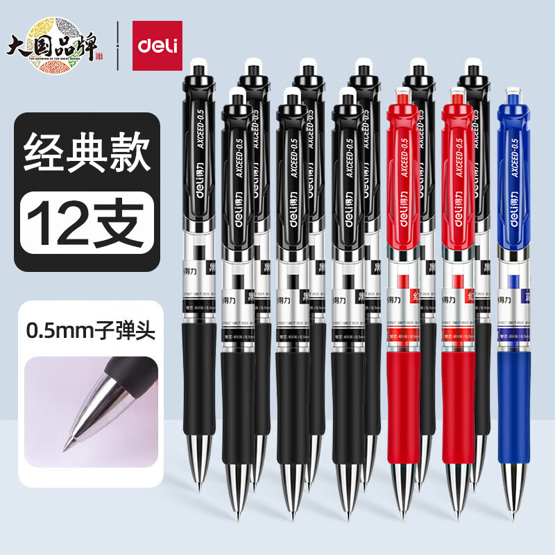 デリ 6600es ゲルペン黒 0.5 ミリメートル弾丸キャッププル水ペン青と赤署名ペンオフィス使用学生