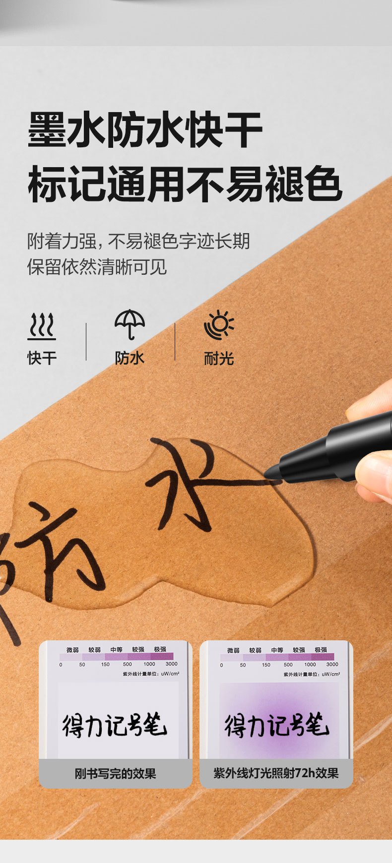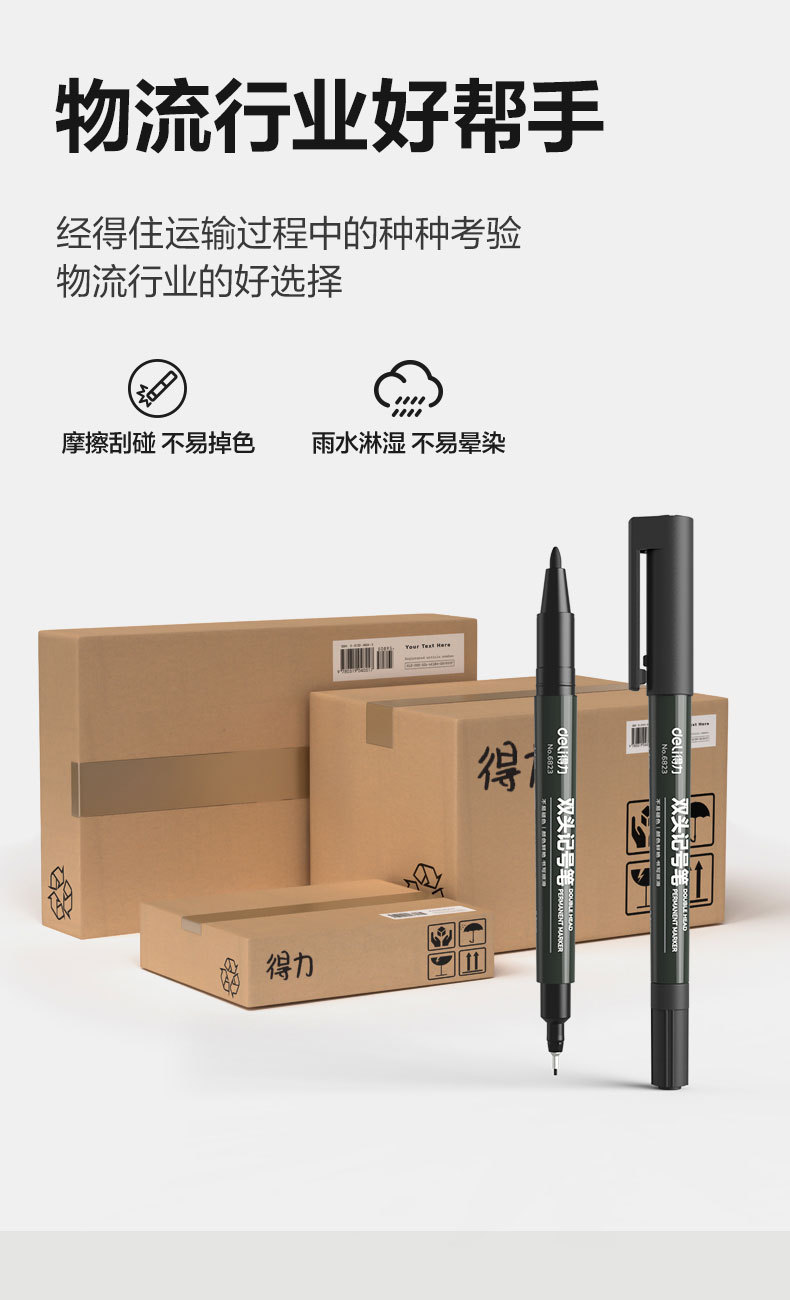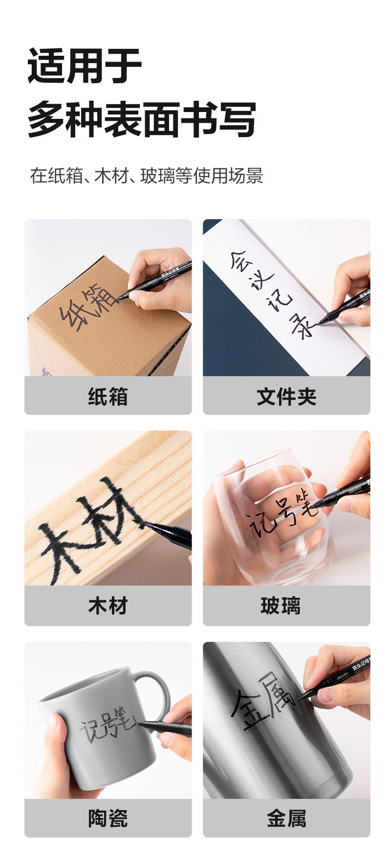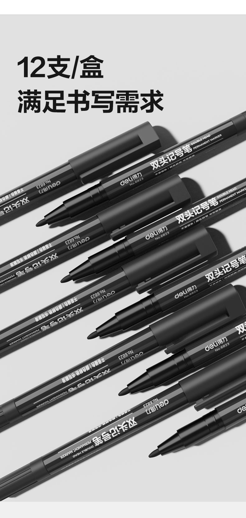 得力6823双头记号笔勾线笔黑色防水防油不掉色学生安全无毒油性笔
