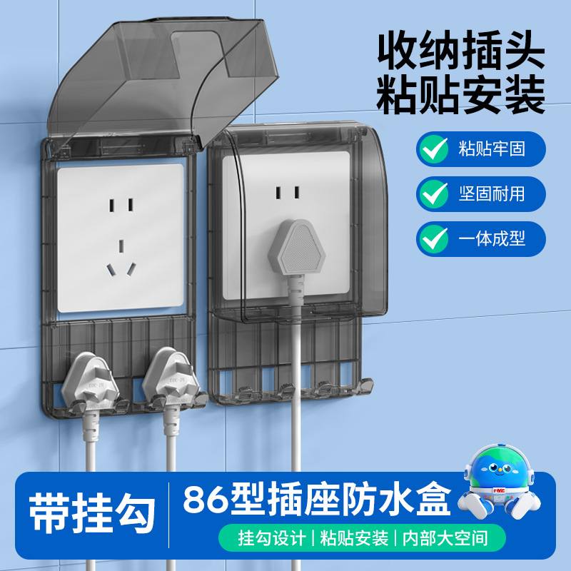 86型插座防水罩漏电卫生间开关保护罩电源防溅遮挡挂钩防水盒室内