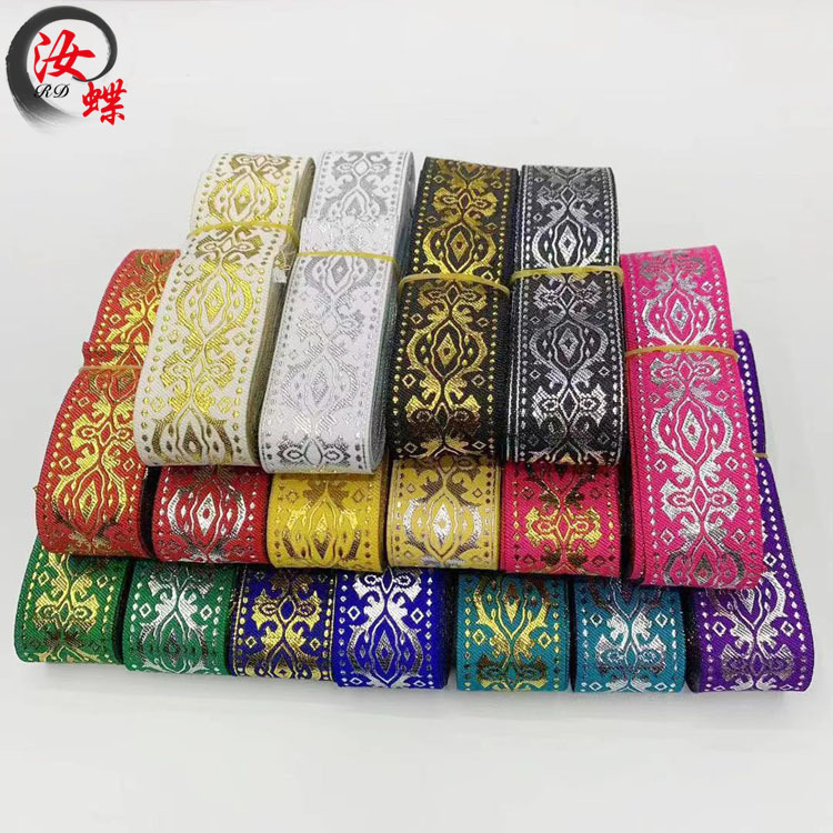 汝蝶3.3cmポリエステル金銀糸民族レースコンピュータジャカードリボンカーテン服装補助材料アクセサリーレース