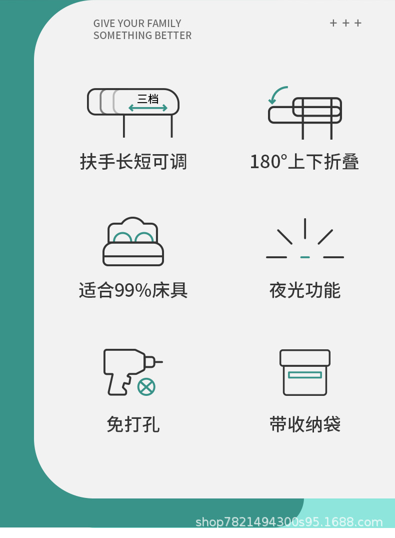 折り畳み式ストレッチベッドサイド手すり老人起き上がり補助器家庭用起き上がり補助フレーム転倒防止ベッドガードレール穴なし