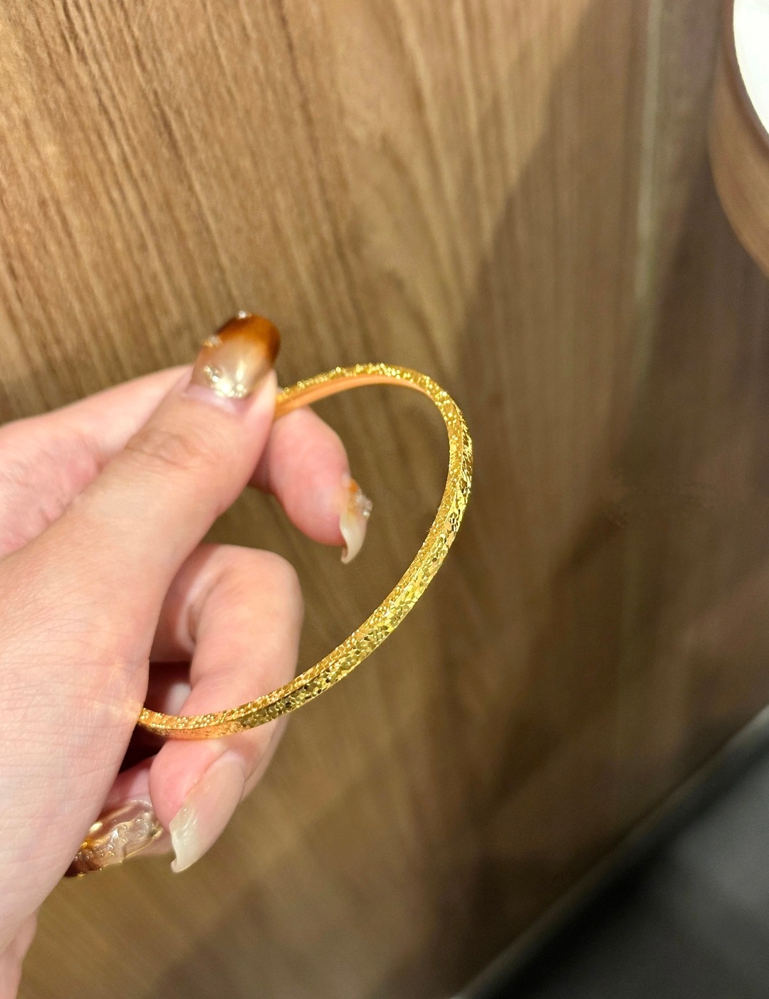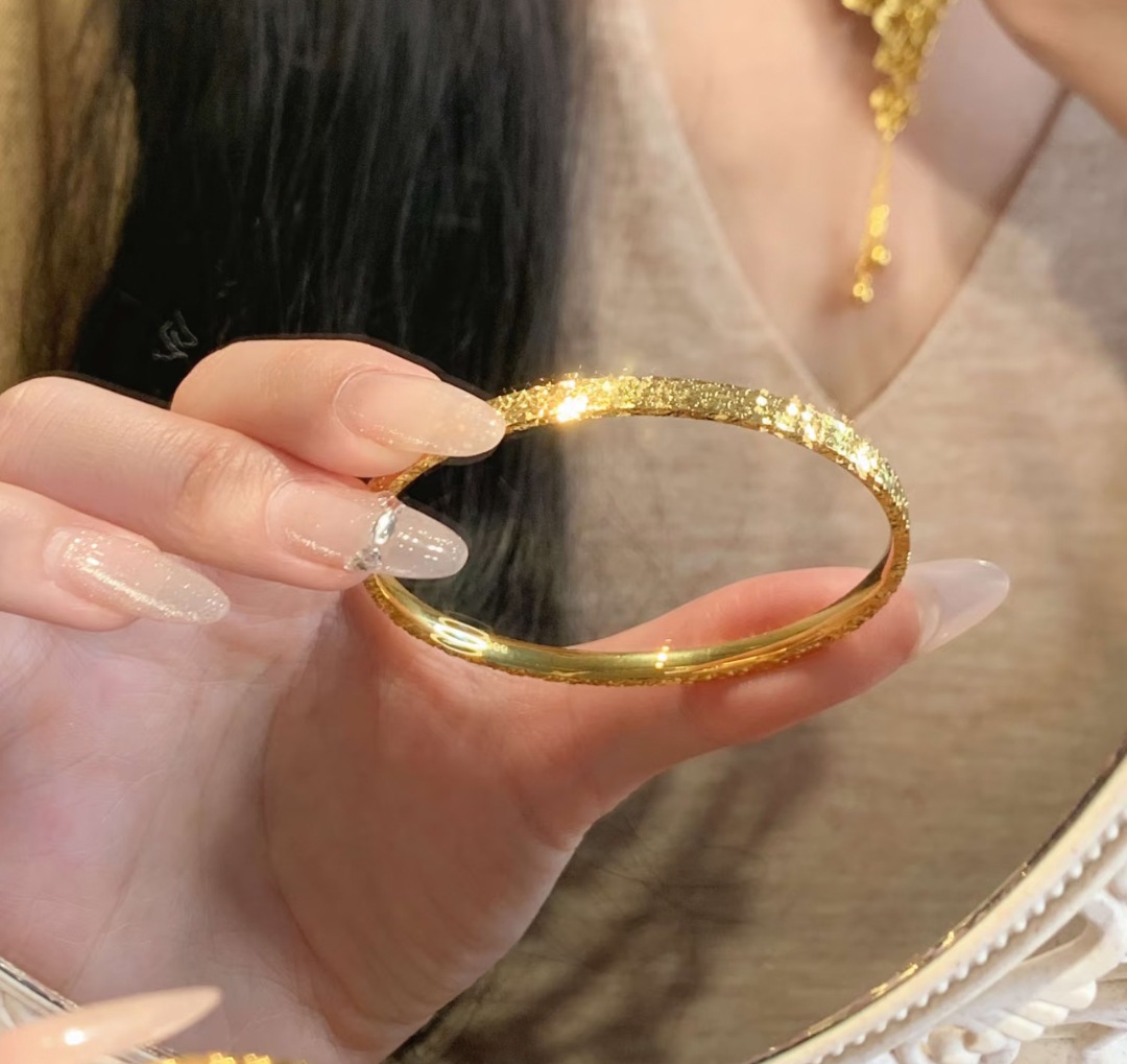 ゴールドストアの女性用の同じスタイルの古代砕氷ブレスレット、ソリッドプレーンブレスレット、ライトラグジュアリーニッチハイエンドサンドゴールドジュエリー