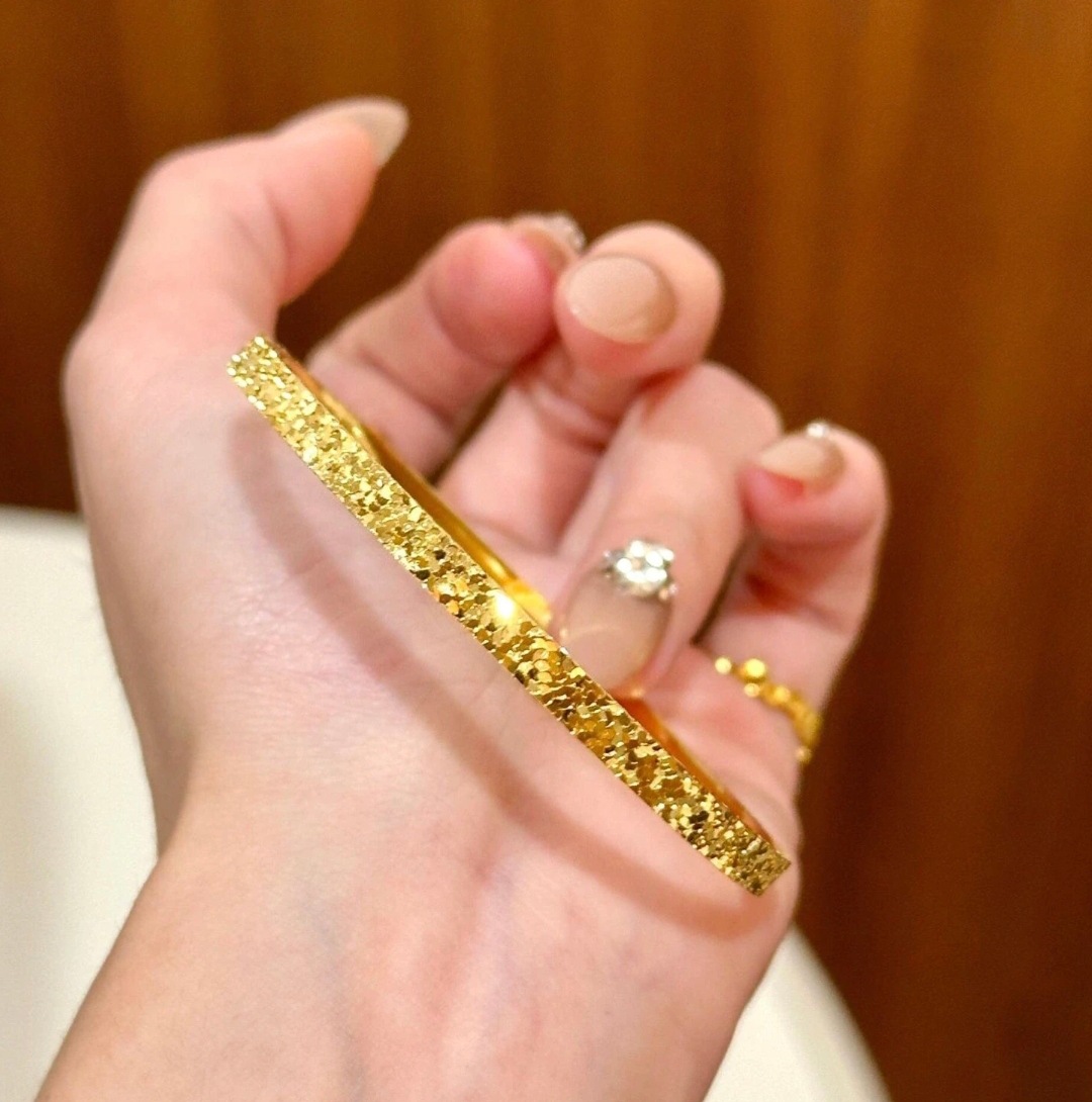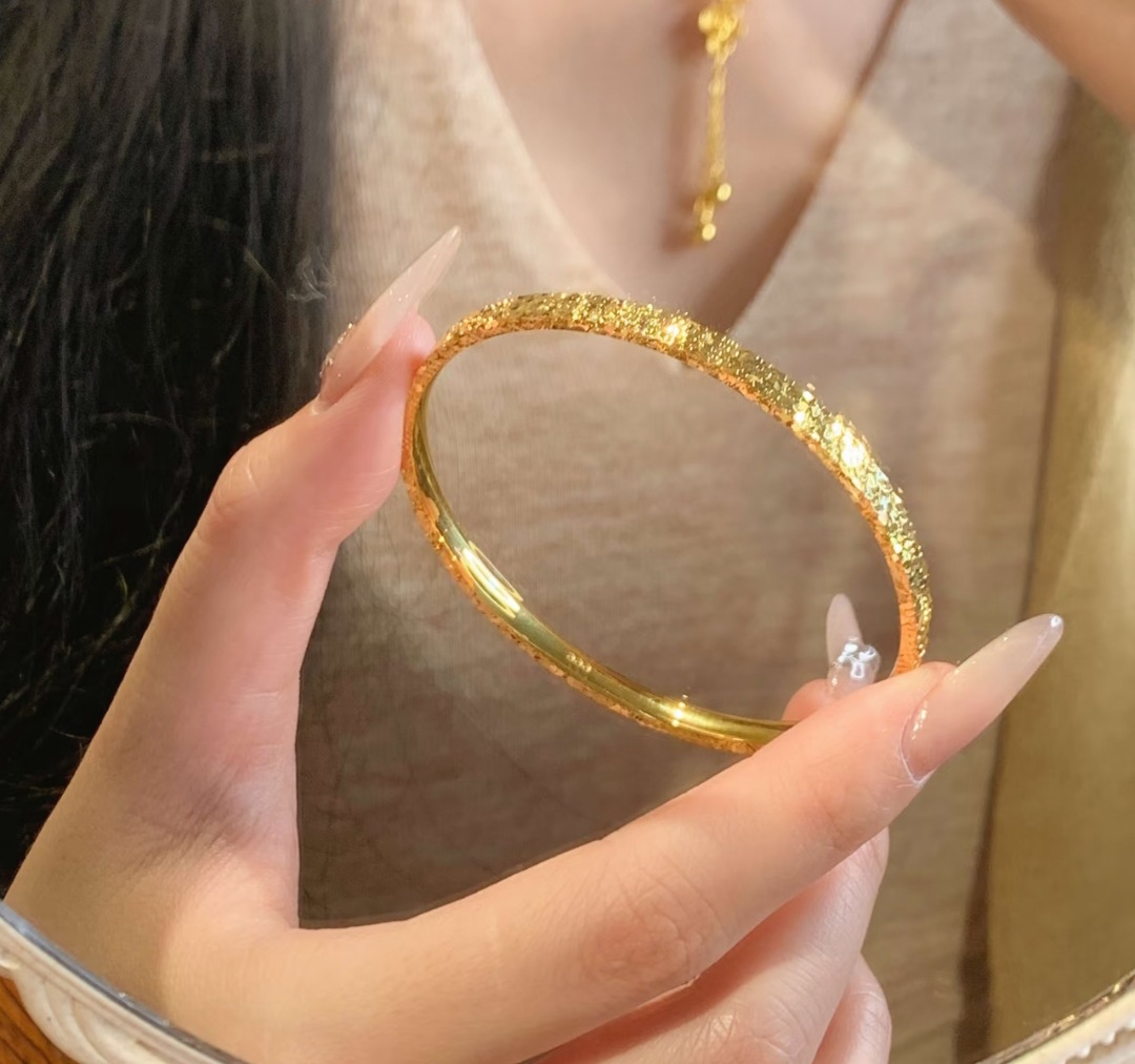 砂金アクセサリー三面砕氷紋ブレスレット女性軽豪華高級感砕金金爆閃素輪中実手環アクセサリー