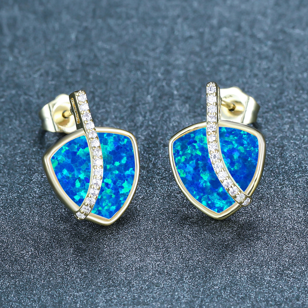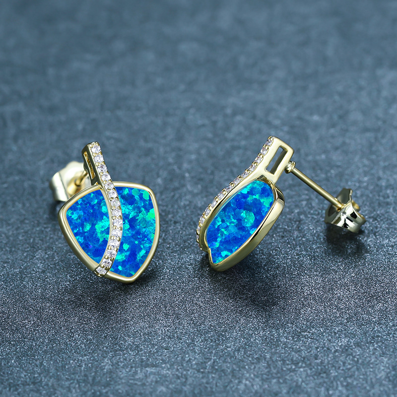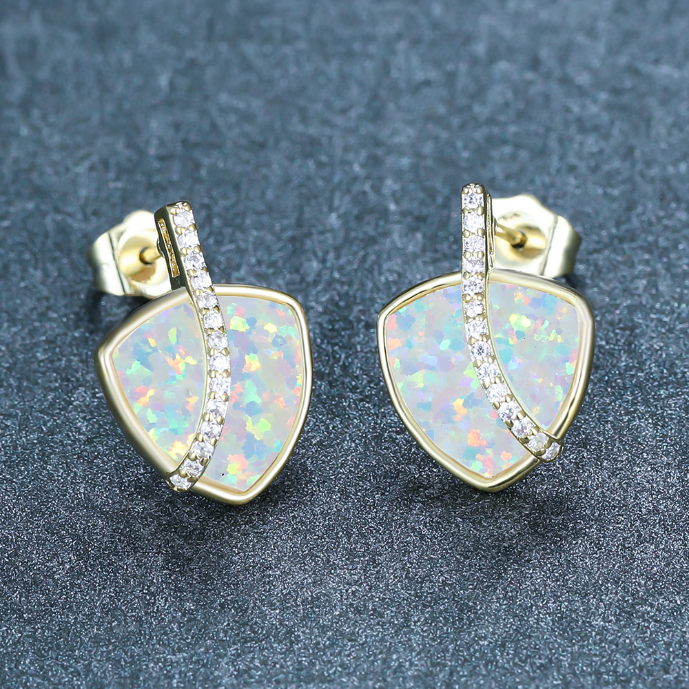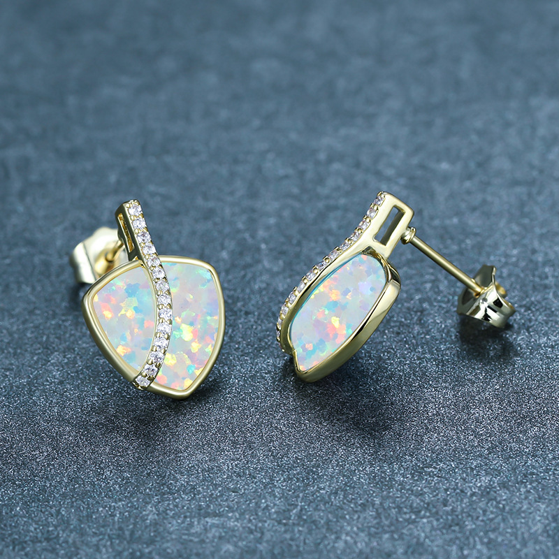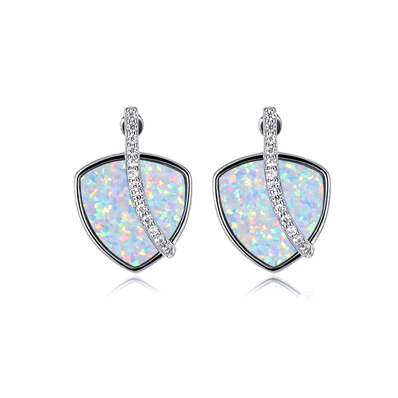 クロスボーダー Amazon ファットトライアングルオパールマイクロセットホワイトダイヤモンドラインデザインイヤリングレディースファッショナブルな通勤多用途イヤリング