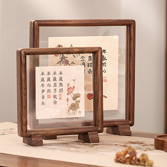 黑胡桃实木榫卯相框双面透明磁吸摆台书法字画装裱高颜值中式画框