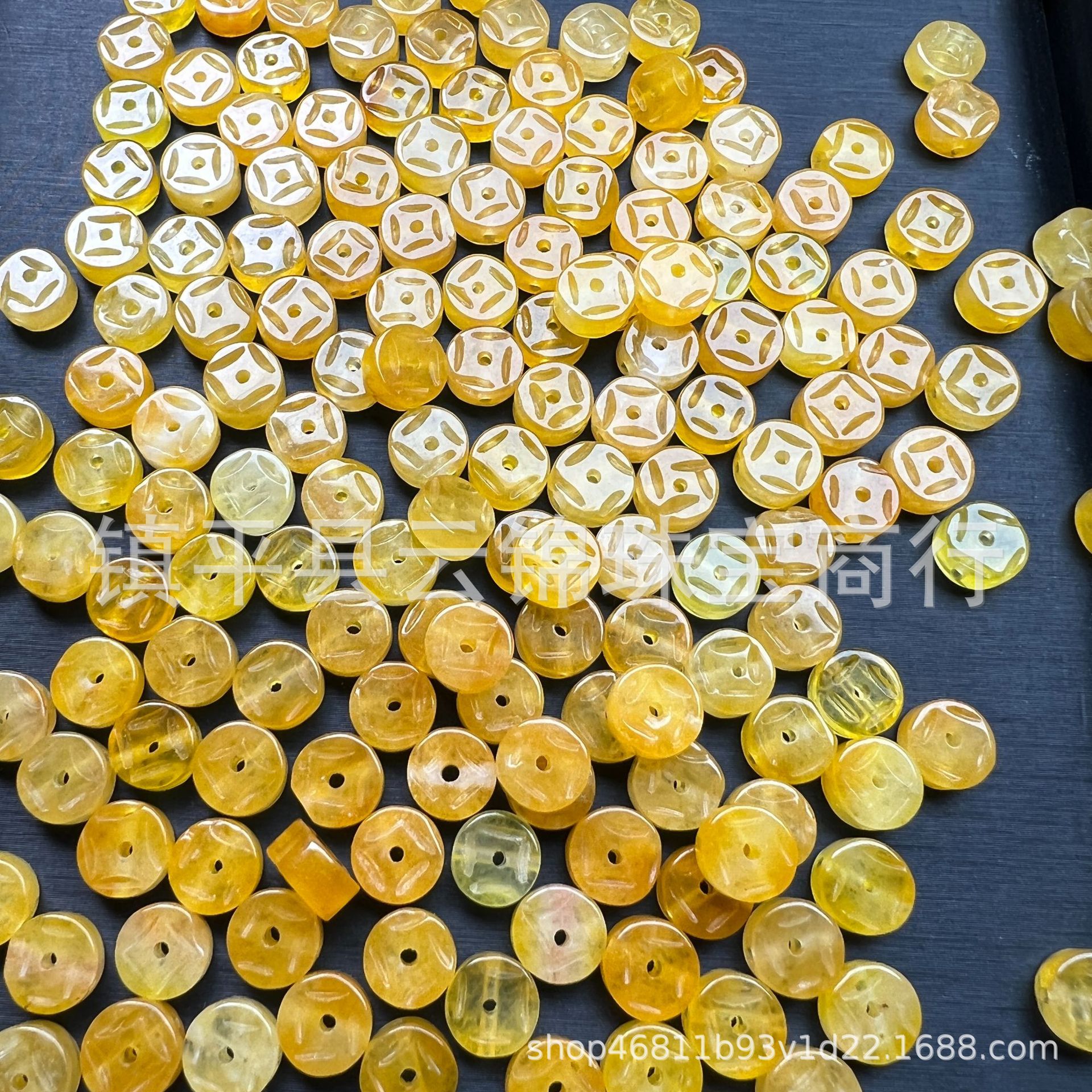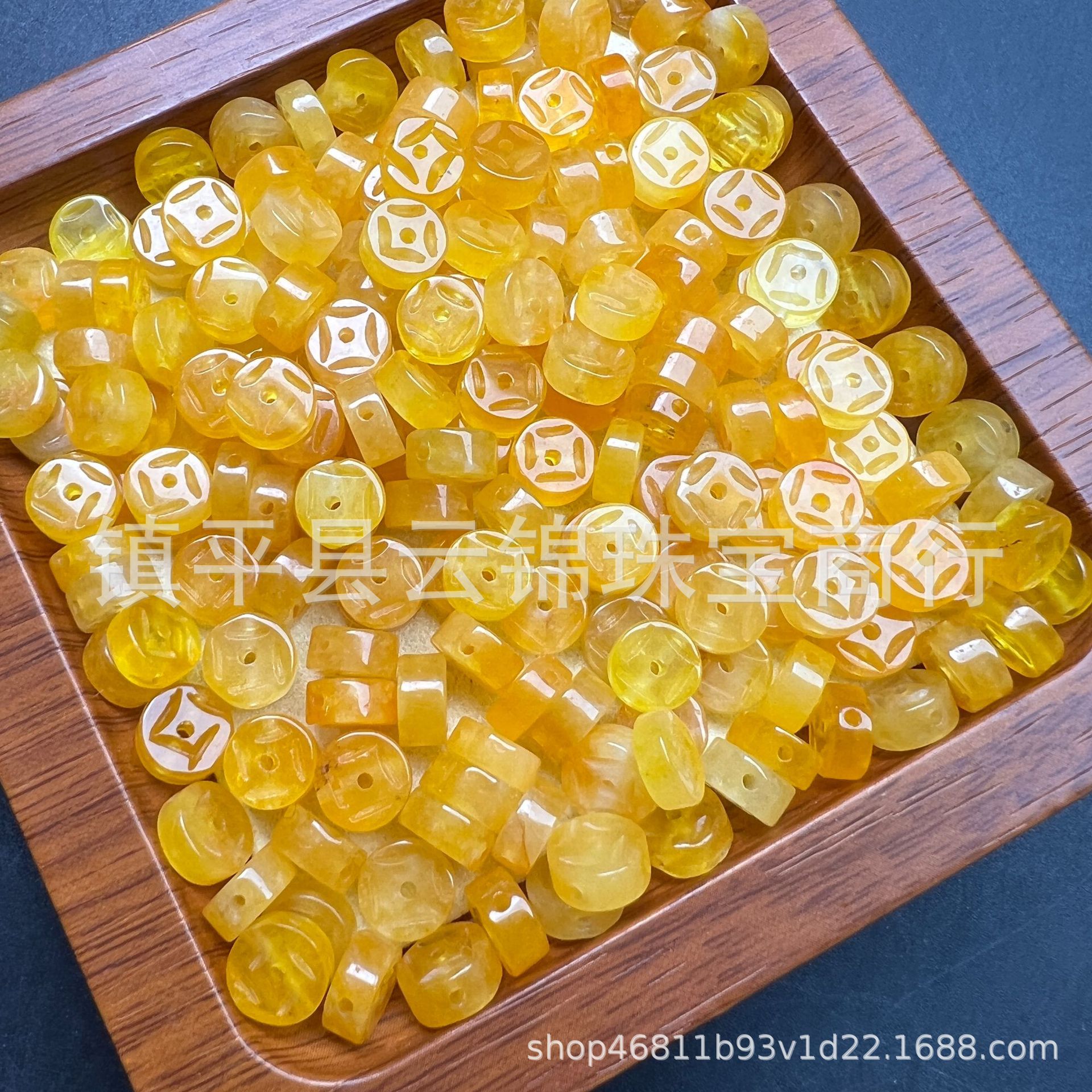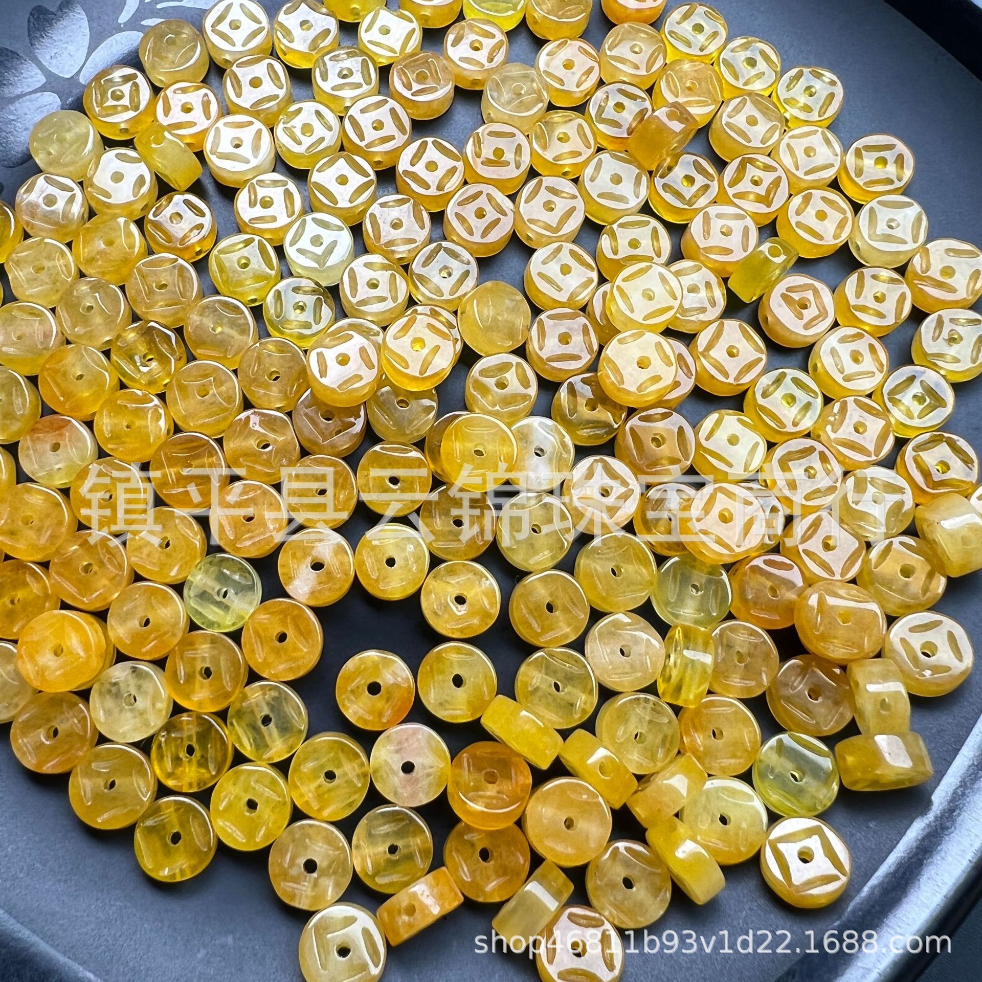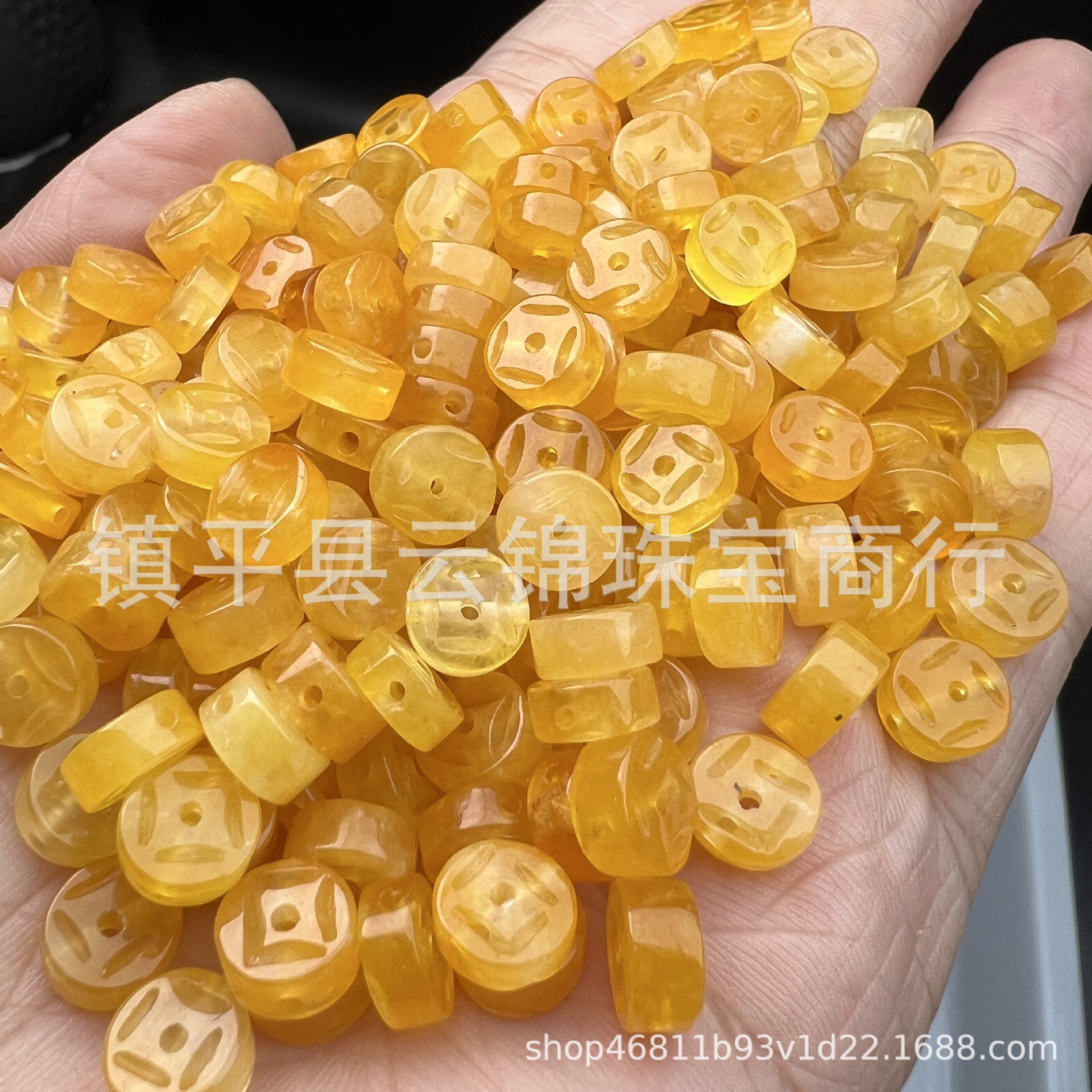 黄翡翠8mm黄色銅銭小串玉翡翠銭串珠横縦穴アクセサリーdiyアクセサリー仕切り