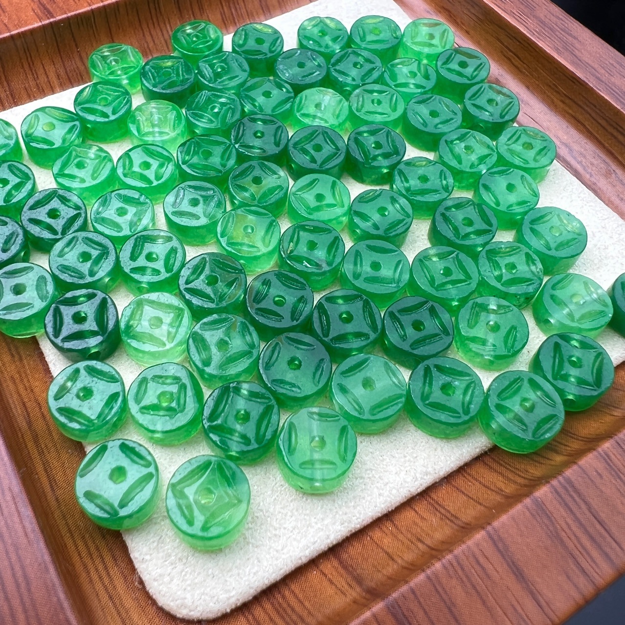 翡翠乾青両面金銭ボタン散珠DIYブレスレットネックレスアクセサリー珠玉玉厚金ボタン散珠