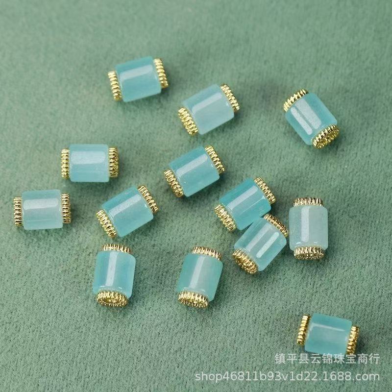 天青冻色镶嵌7x11通孔桶珠批发 diy玉石饰品手链项链吊坠玉配饰
