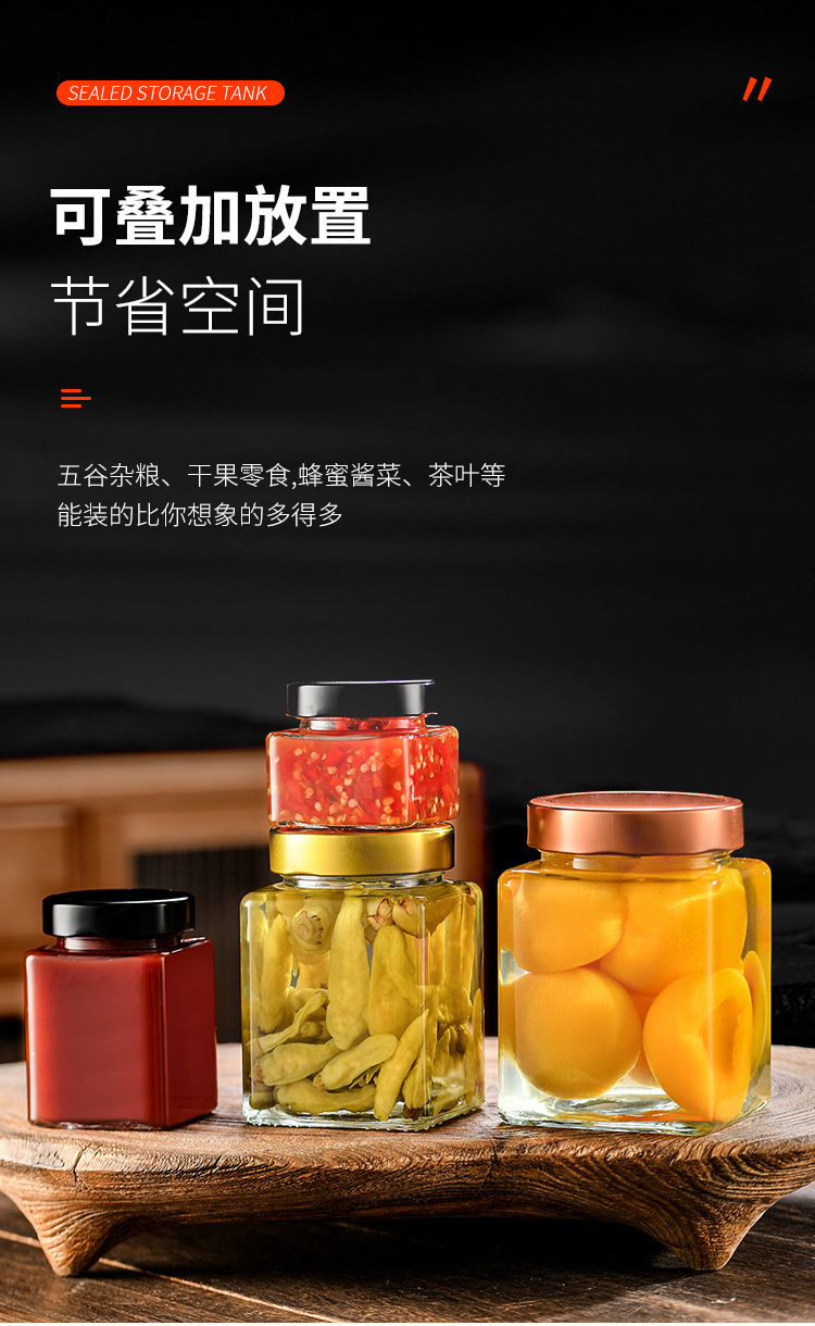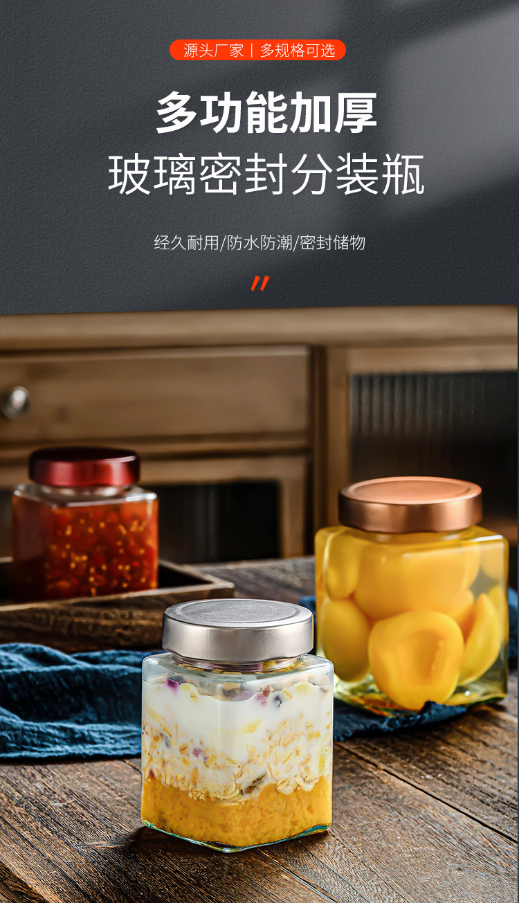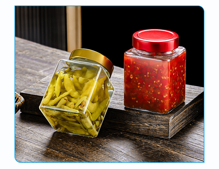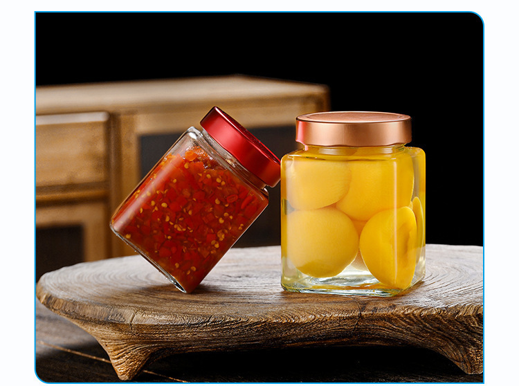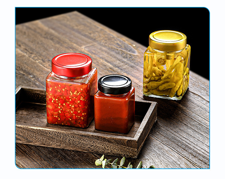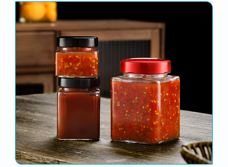 方形果酱瓶透明蜂蜜瓶家用小容量罐头瓶泡菜瓶玻璃辣椒酱果酱瓶