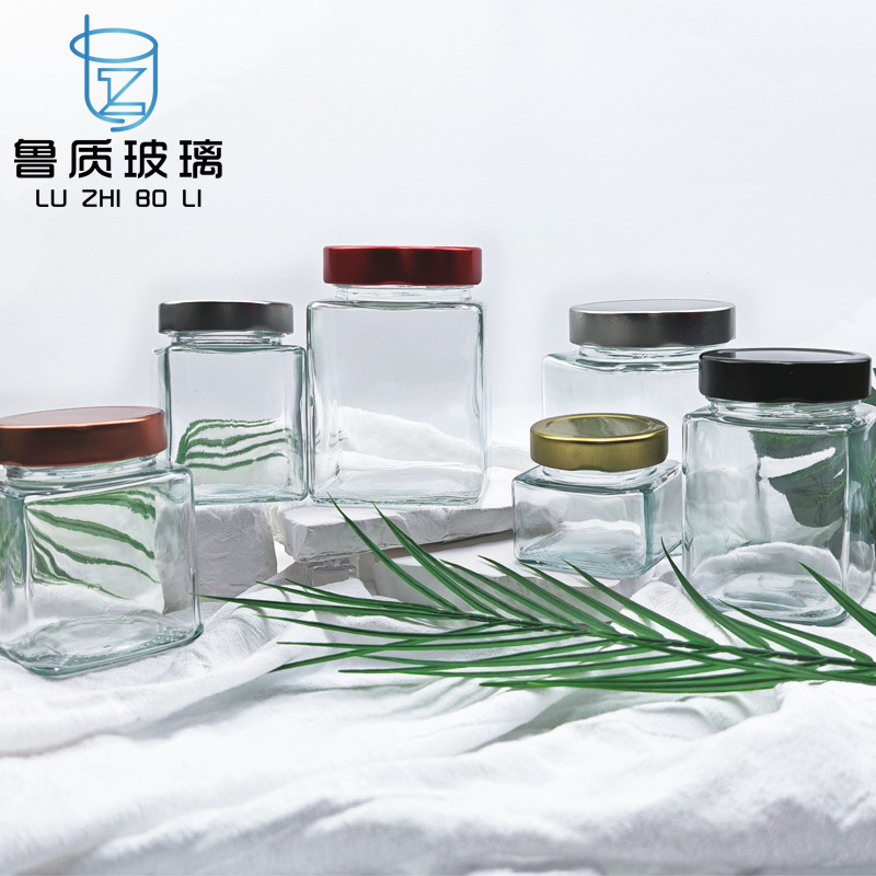 アマゾンスポット卸売り四方蜂蜜瓶密封缶透明ガラスジャム瓶蜂蜜缶アルミ蓋付き