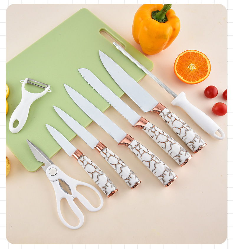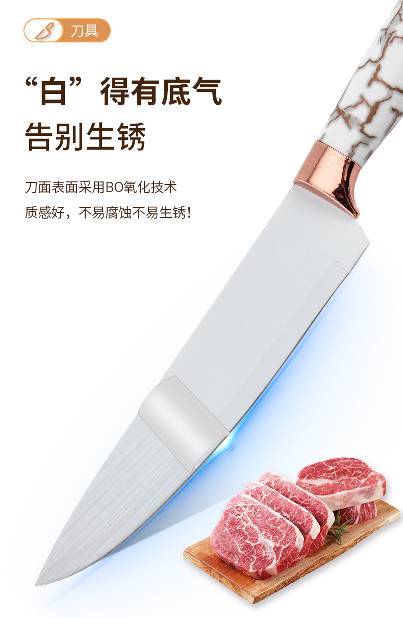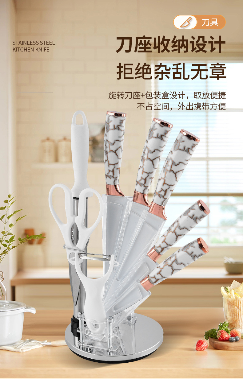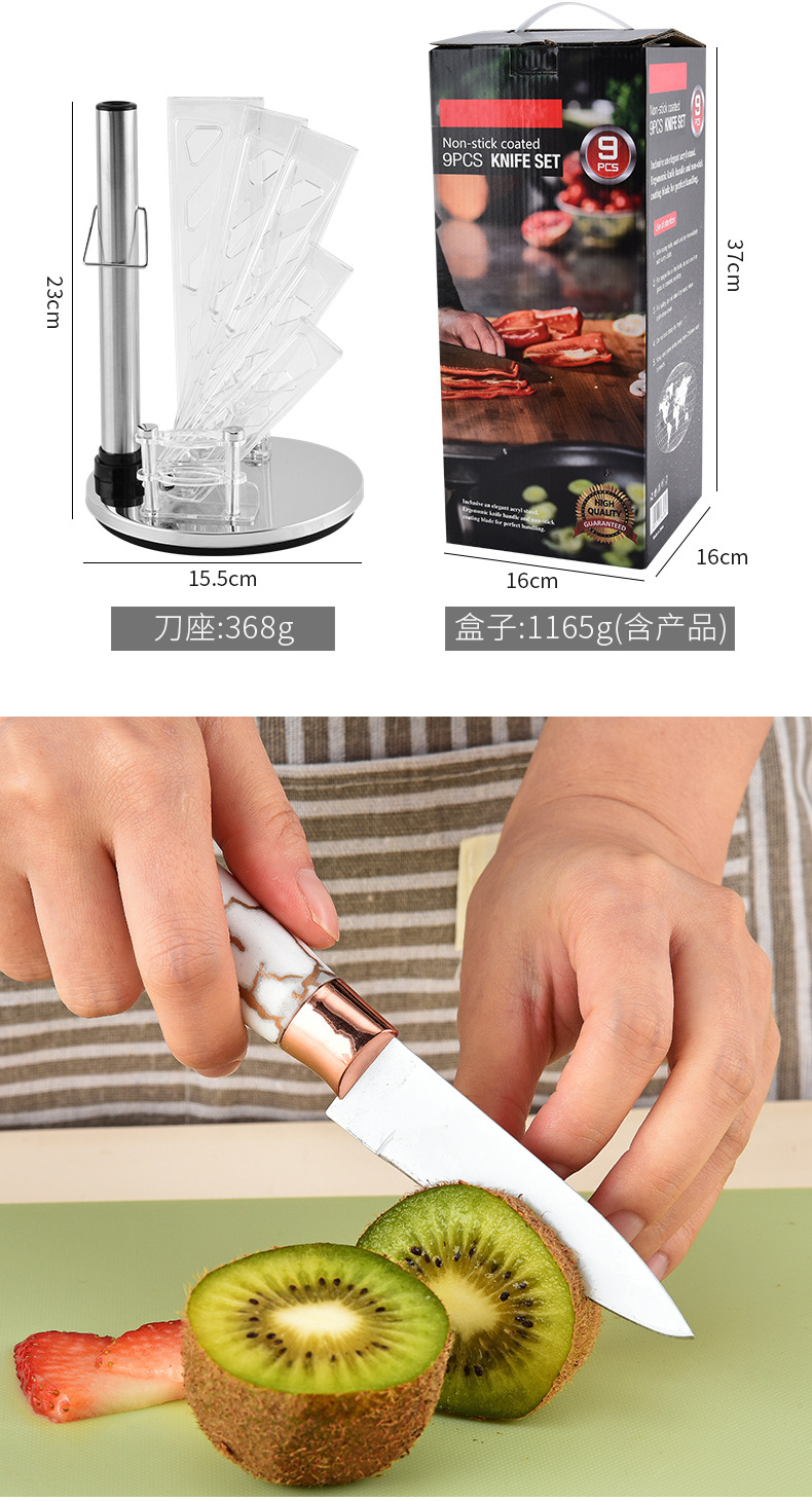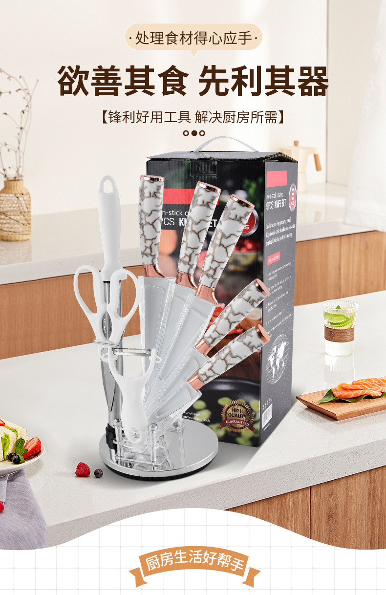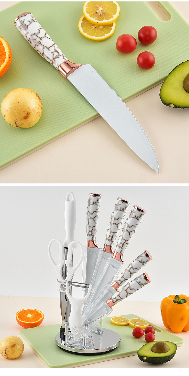 スポット大理石ハンドル9点セットステンレス鋼家庭用包丁キッチンスライス肉包丁セットナイフホルダー