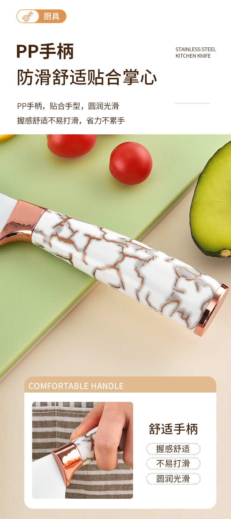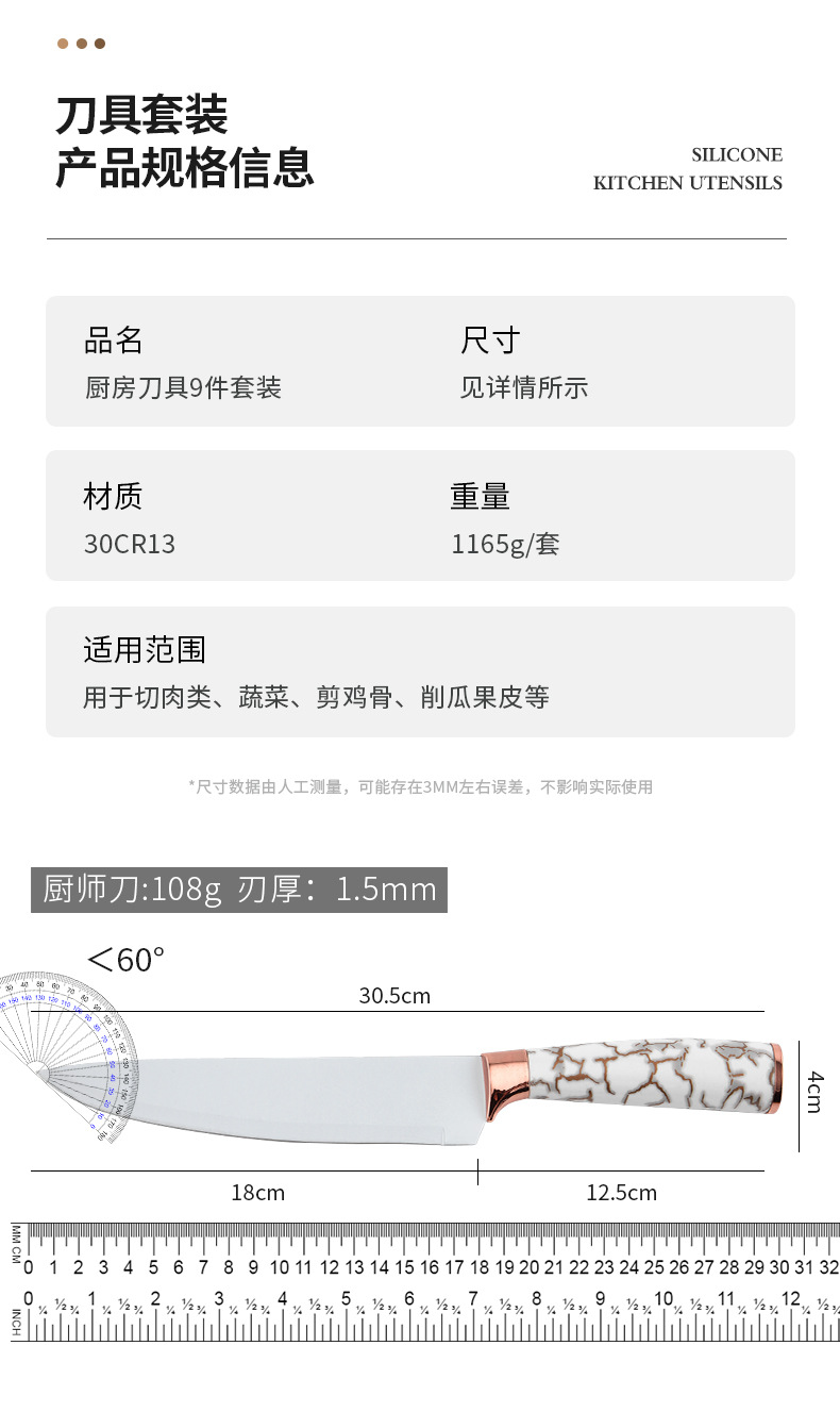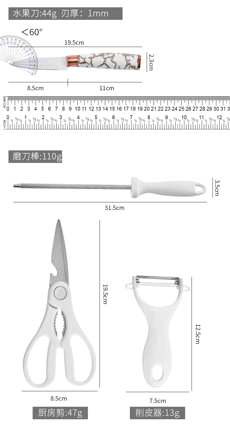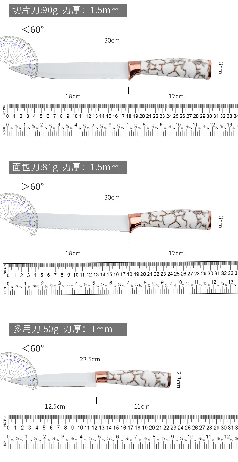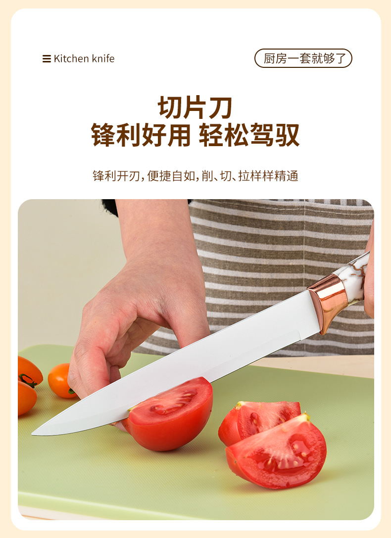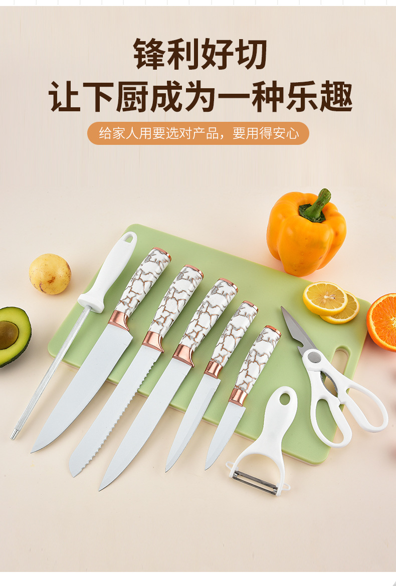 スポット大理石ハンドル9点セットステンレス鋼家庭用包丁キッチンスライス肉包丁セットナイフホルダー